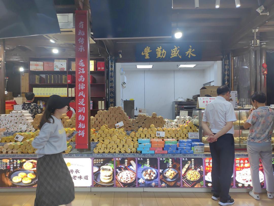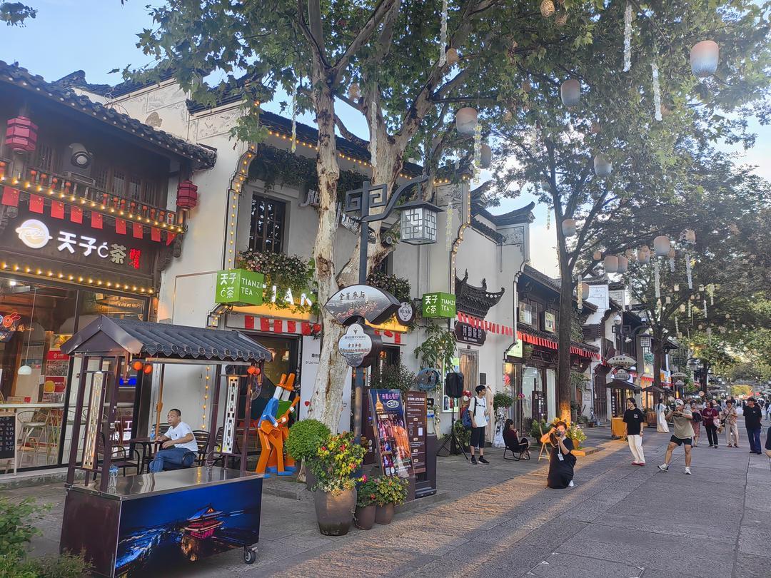 傍晚,代表们走进了衢州水亭门历史文化街区。作为衢州古城的标志性地标,这里保留着“三街七巷”的传统格局,白墙黛瓦的徽派建筑与民国风情屋舍错落分布,复建的天王塔与修缮完好的神农殿,在喧嚣中守着岁月静好。步入街区,烤饼的焦香、非遗手作店的巧思与商铺的吆喝声交织,游客与居民摩肩接踵,鲜活的市井气息扑面而来。