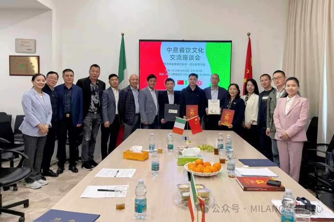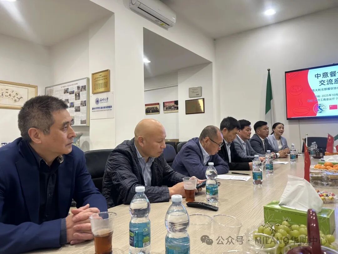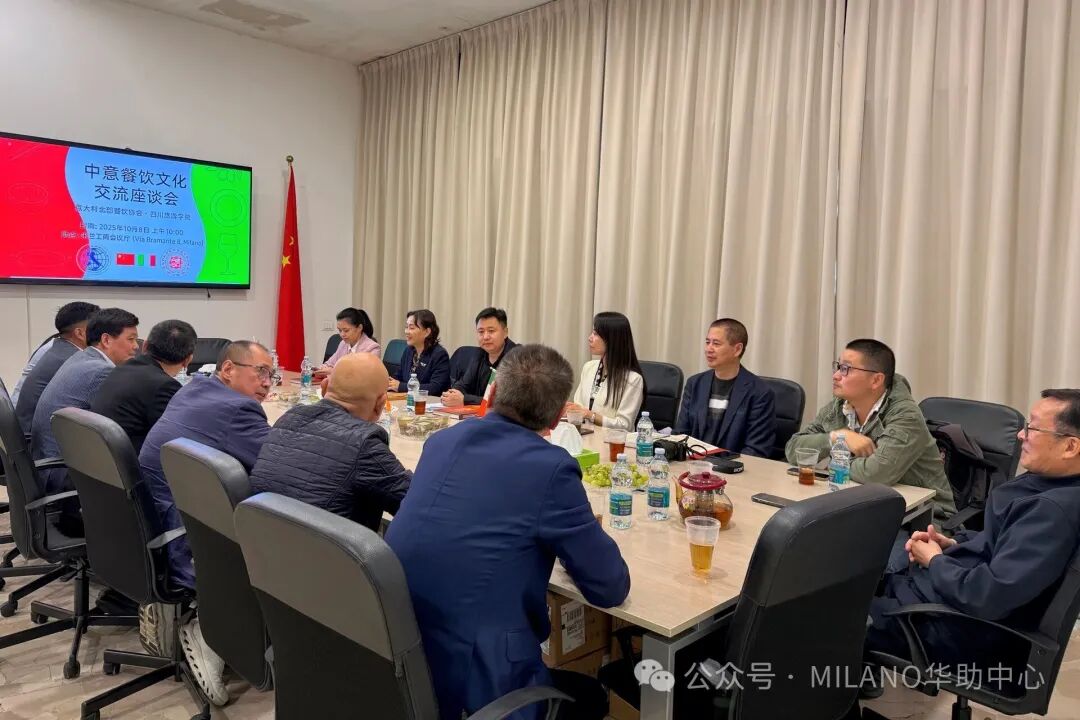 欧洲壹佰君网消息:10月8日上午,四川旅游学院冯明会副院长率领“川菜发展与饮食文化研究院访欧代表团”一行四人来到米兰考察调研,并与意大利北部华侨华人餐饮业协会举行了一场富有成效的专题座谈会。意大利北部华侨华人餐饮业协会会长周斌、米兰华侨华人工商会长黄国权、执行会长池小云、胡小秋、秘书长周建煌、米兰浙江侨商会会长林茂峰、意大利北部华侨华人餐饮业协会执行会长叶平、秘书长黄素萍、副会长刘海波等出席座谈会。