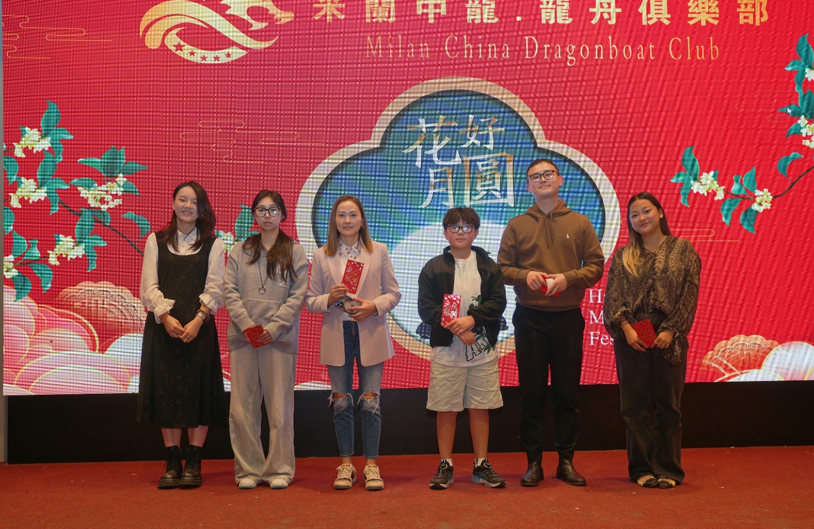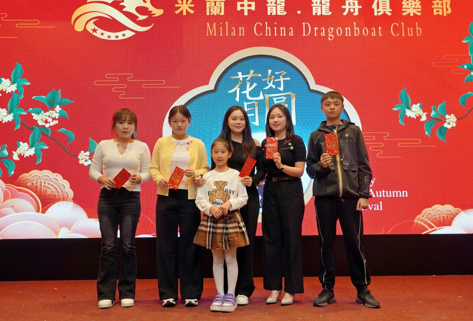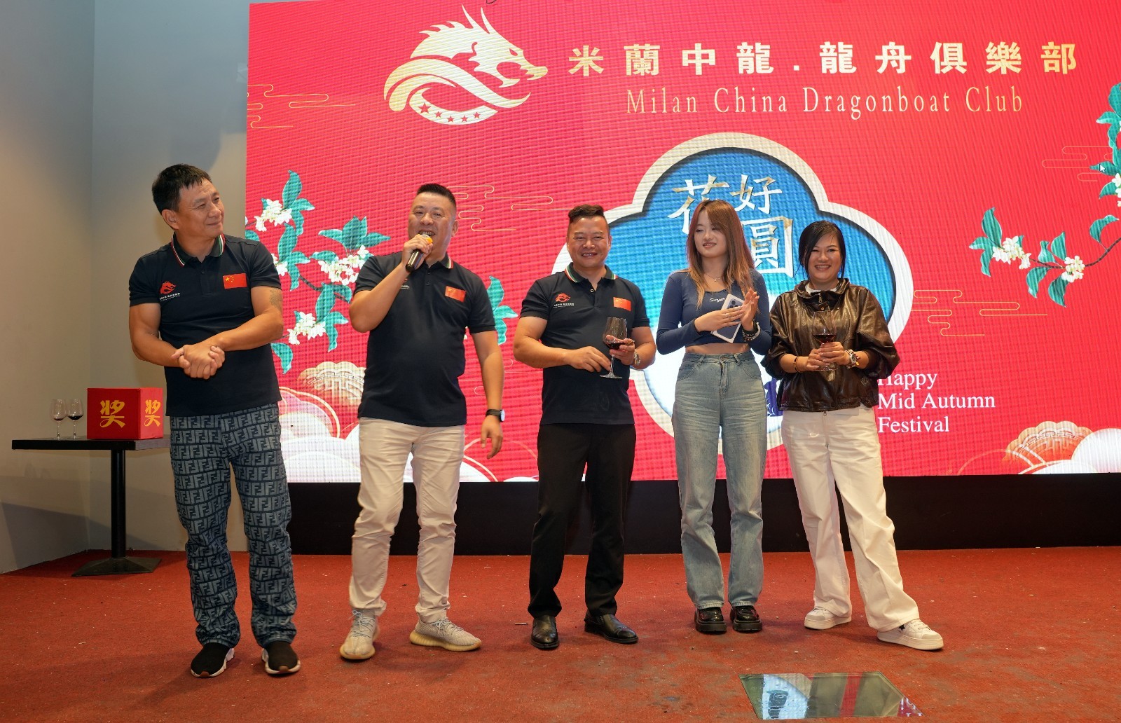 欧洲壹佰君2025年10月7日意大利米兰电:10月6日晚,意大利米兰君悦大酒店灯火辉煌、喜气洋洋。米兰中龙龙舟俱乐部在这里盛大举行庆祝中秋节联欢晚会。这场融合中华传统文化与侨界体育精神的盛会,吸引了俱乐部全体队员、家属及众多意大利友人近180人共同参与。在温馨与欢乐的氛围中,大家共度佳节,回顾奋斗历程,畅谈未来愿景,展现出海外华人团结向上、奋勇拼搏的精神风貌。