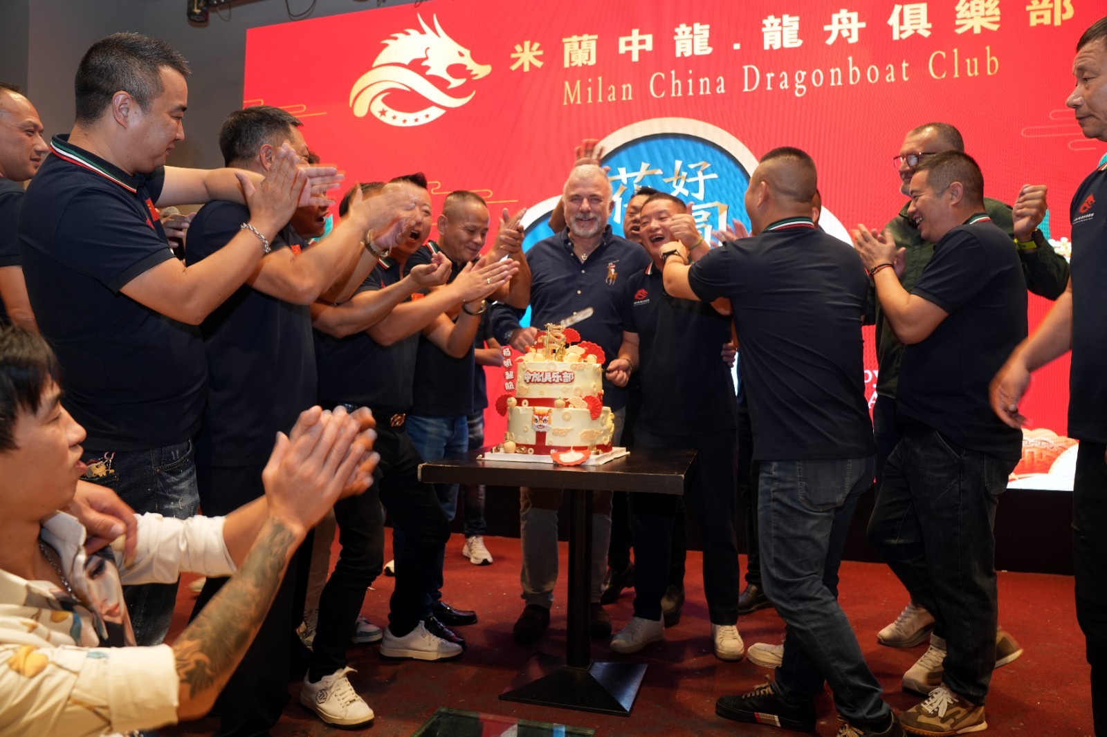 期间,中龙龙舟俱乐部队长管纬发表了热情洋溢的讲话。他首先代表全体成员,感谢每一位队员的辛勤付出,感谢家属们背后的默默支持,以及意大利各界友人和企业的赞助帮助。