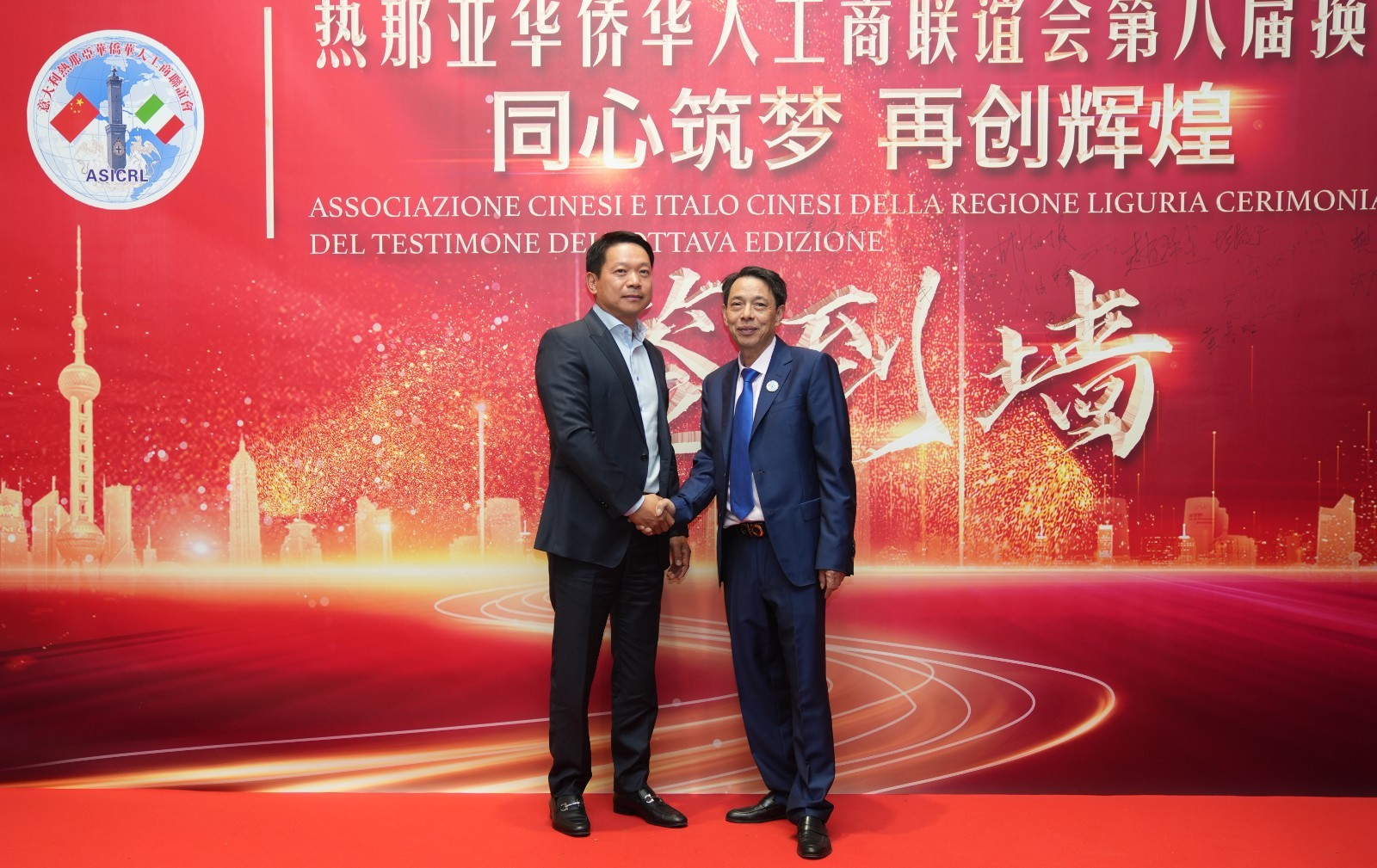 阮向明会长在讲话中表示:“今天,新一届理事会即将接过这承载希望与责任的接力棒。看到以胡志顶会长为核心、充满活力与担当的新团队,我深感欣慰且充满信心。相信在胡会长的带领下,联谊会必将在热那亚侨界创造新的辉煌,让我们的‘侨之光’在亚平宁半岛更加闪耀。”