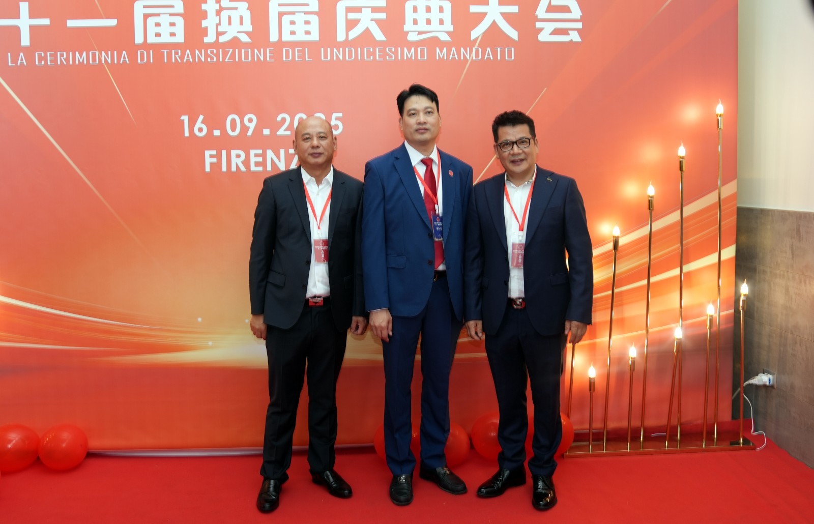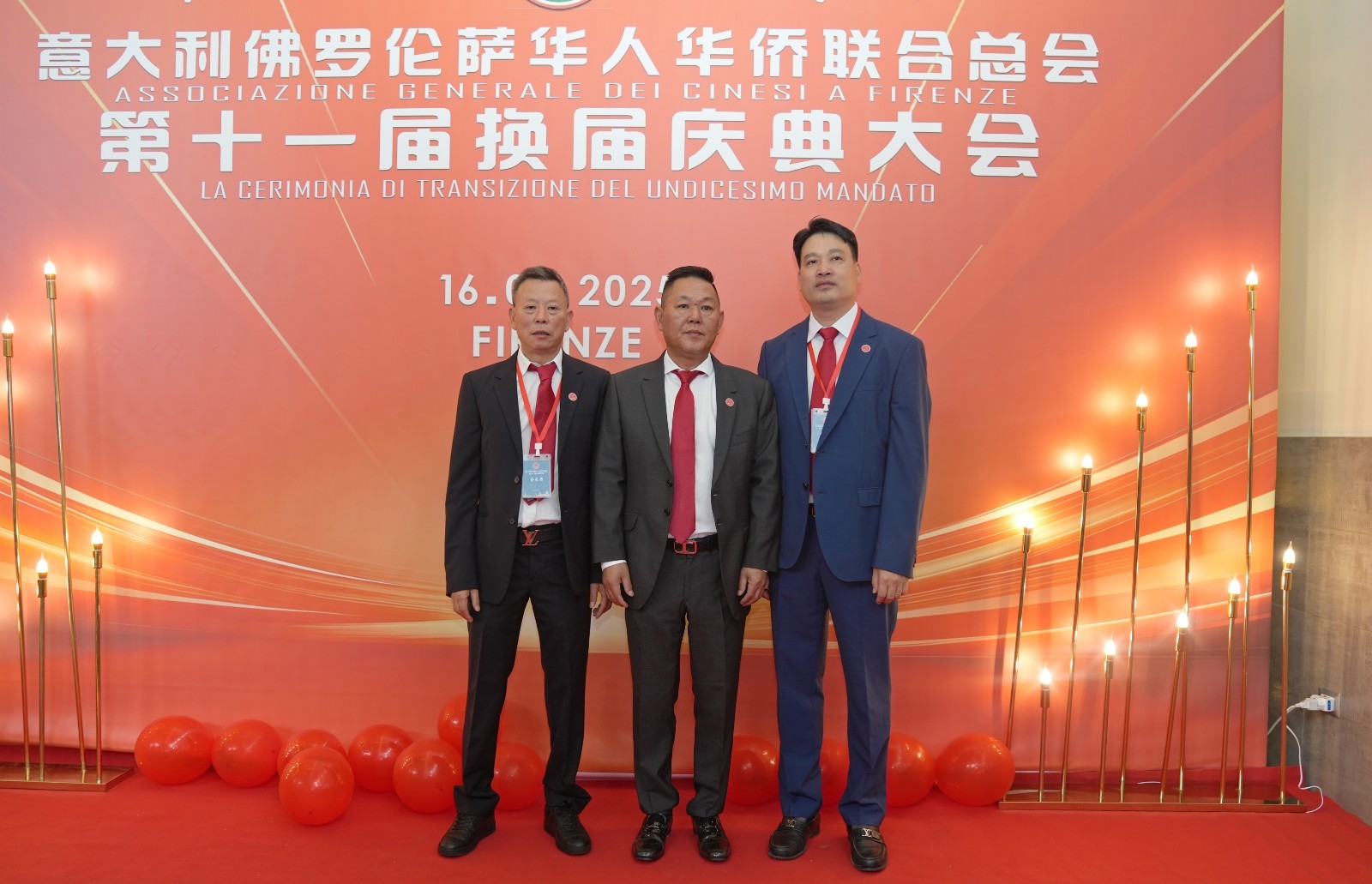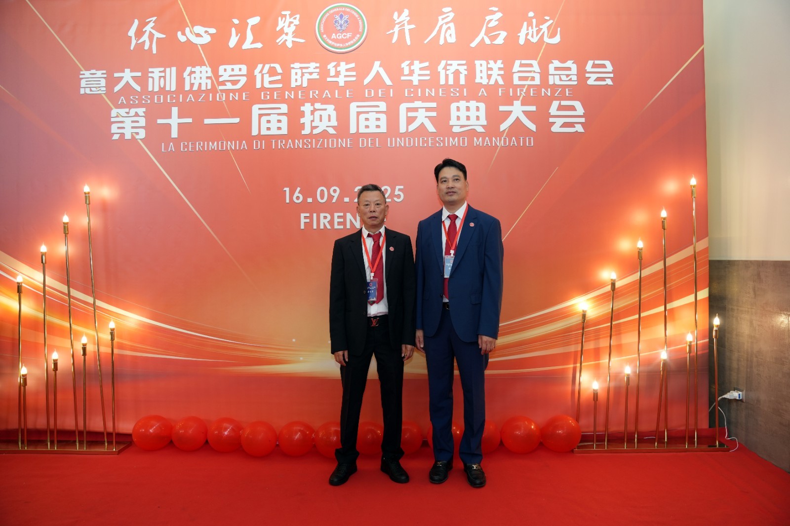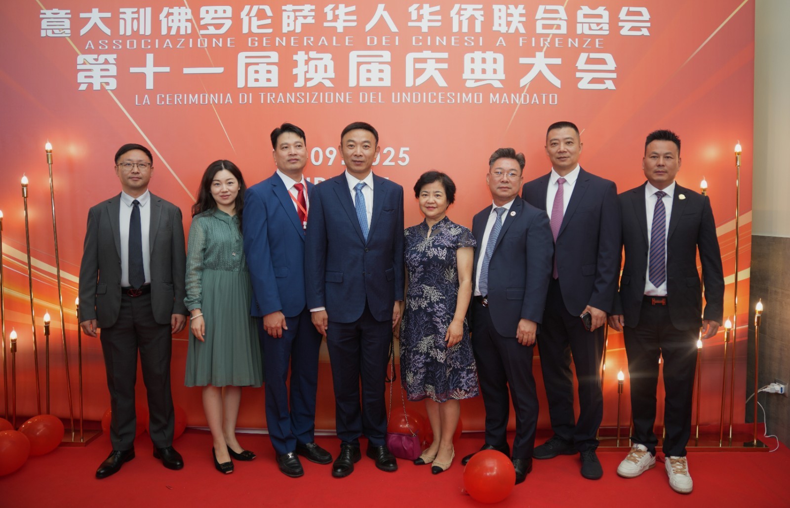 欧洲壹佰君2025年9月17日意大利佛罗伦萨电:9月16日,意大利佛罗伦萨华人华侨联合总会在佛罗伦萨Libeccio大酒店隆重举行第十一届换届庆典大会。来自中意两国的各界嘉宾、当地政府政要,以及欧洲多国兄弟侨团代表齐聚一堂,共同见证这一具有里程碑意义的盛会。