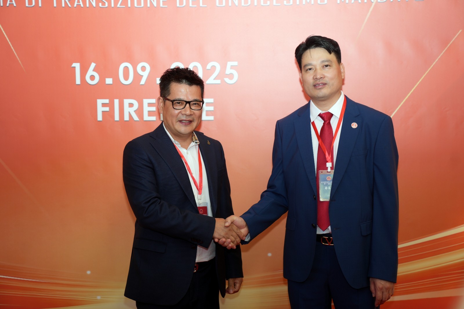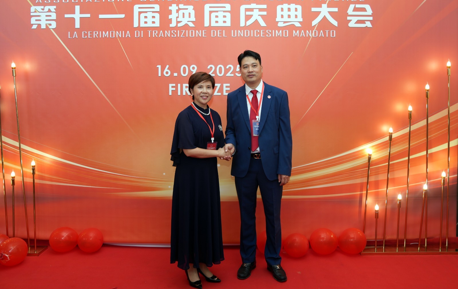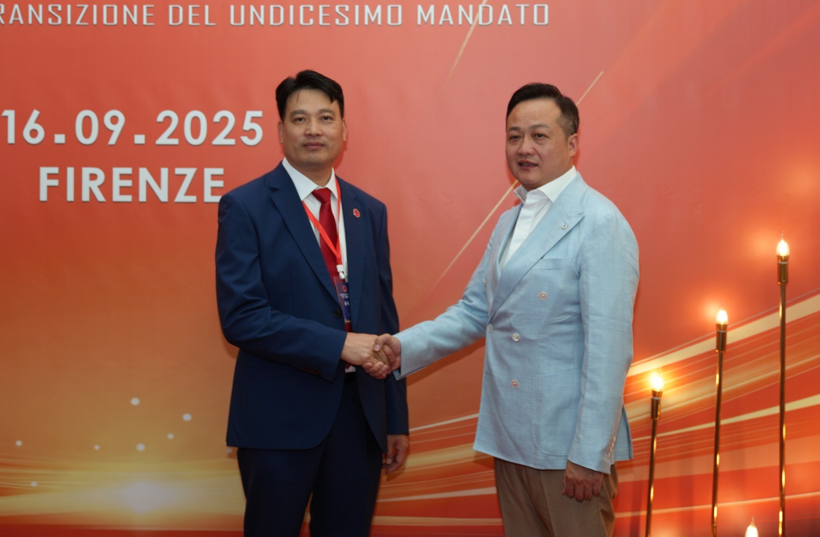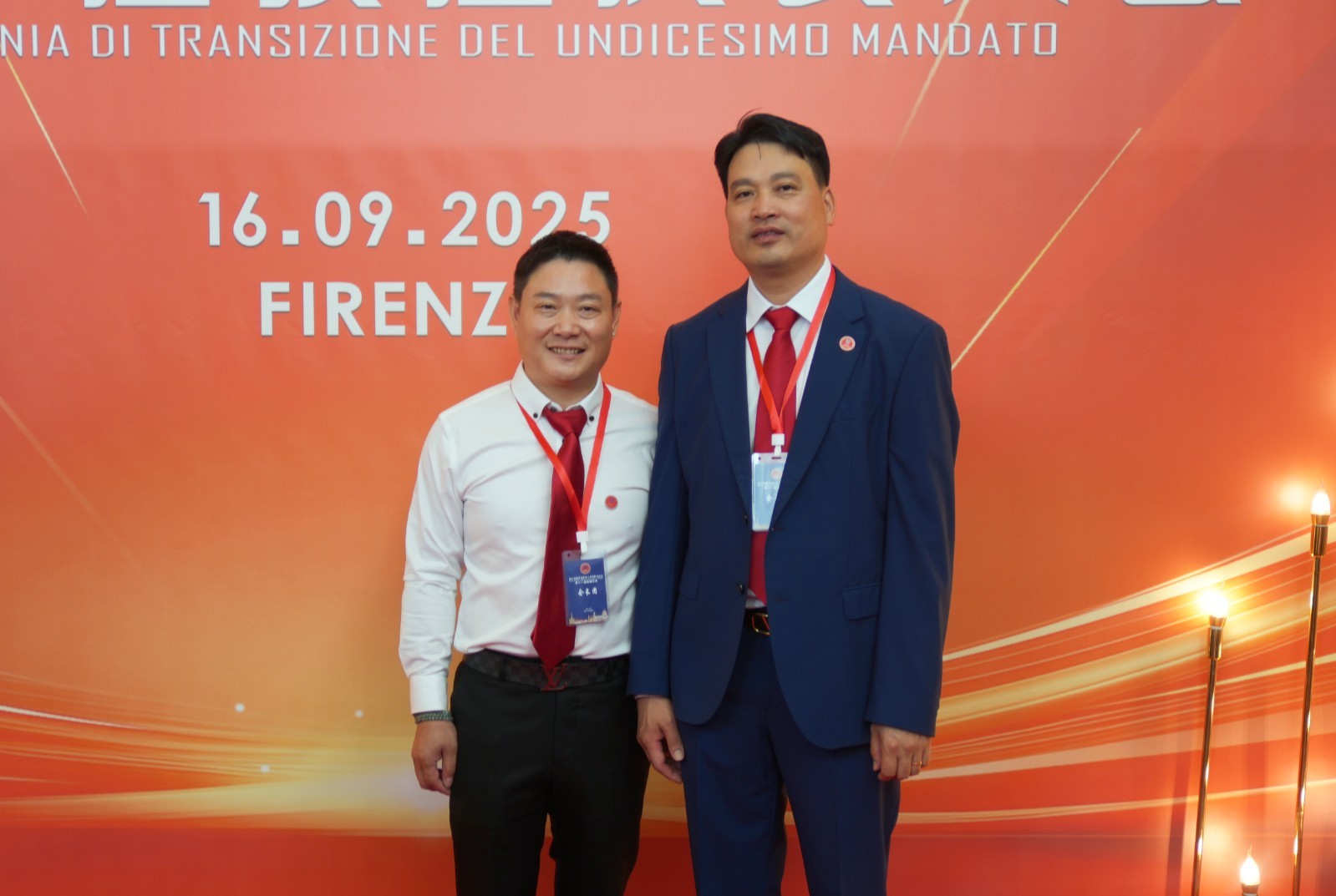 欧洲壹佰君2025年9月17日意大利佛罗伦萨电:9月16日,意大利佛罗伦萨华人华侨联合总会在佛罗伦萨Libeccio大酒店隆重举行第十一届换届庆典大会。来自中意两国的各界嘉宾、当地政府政要,以及欧洲多国兄弟侨团代表齐聚一堂,共同见证这一具有里程碑意义的盛会。