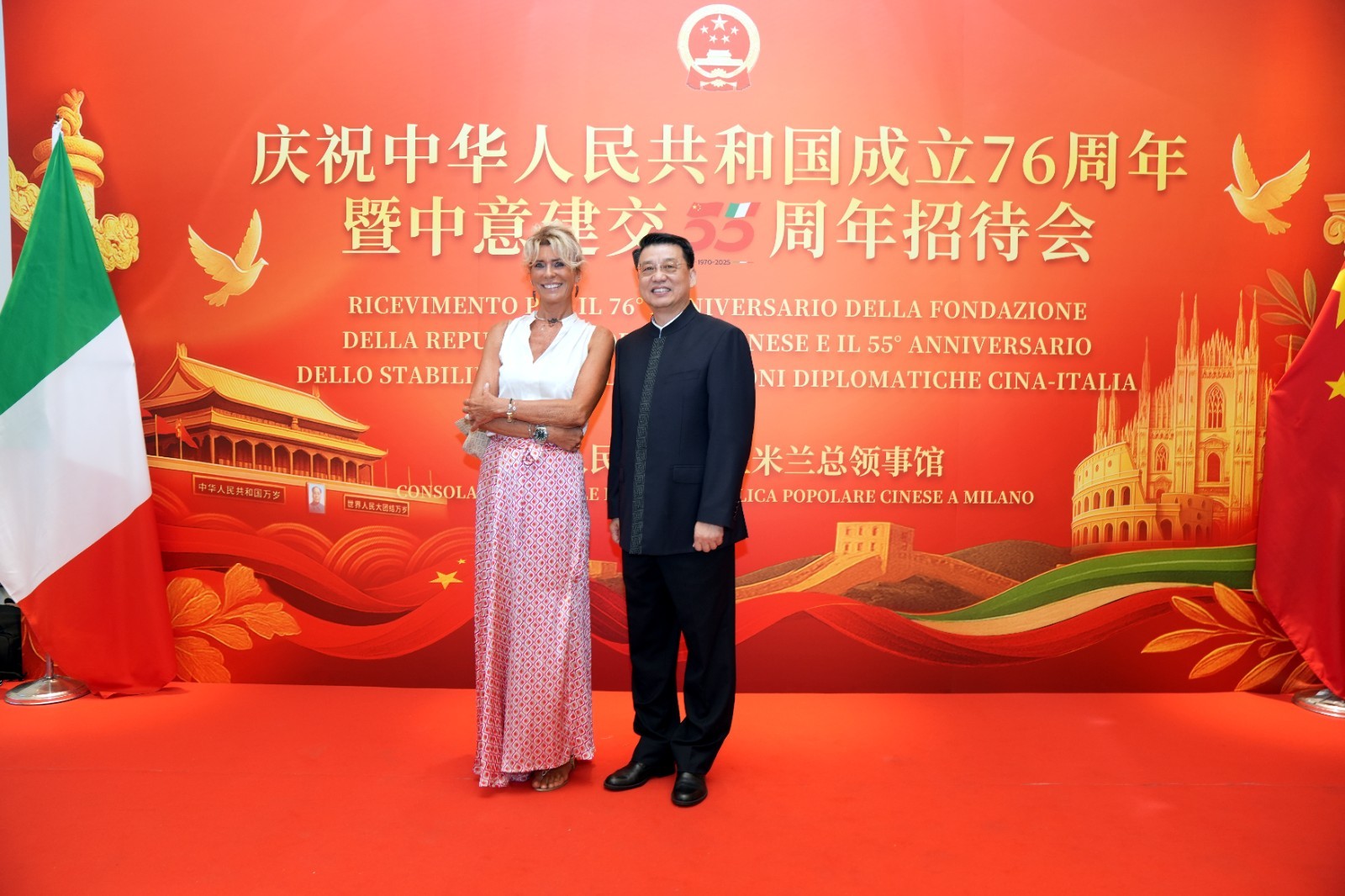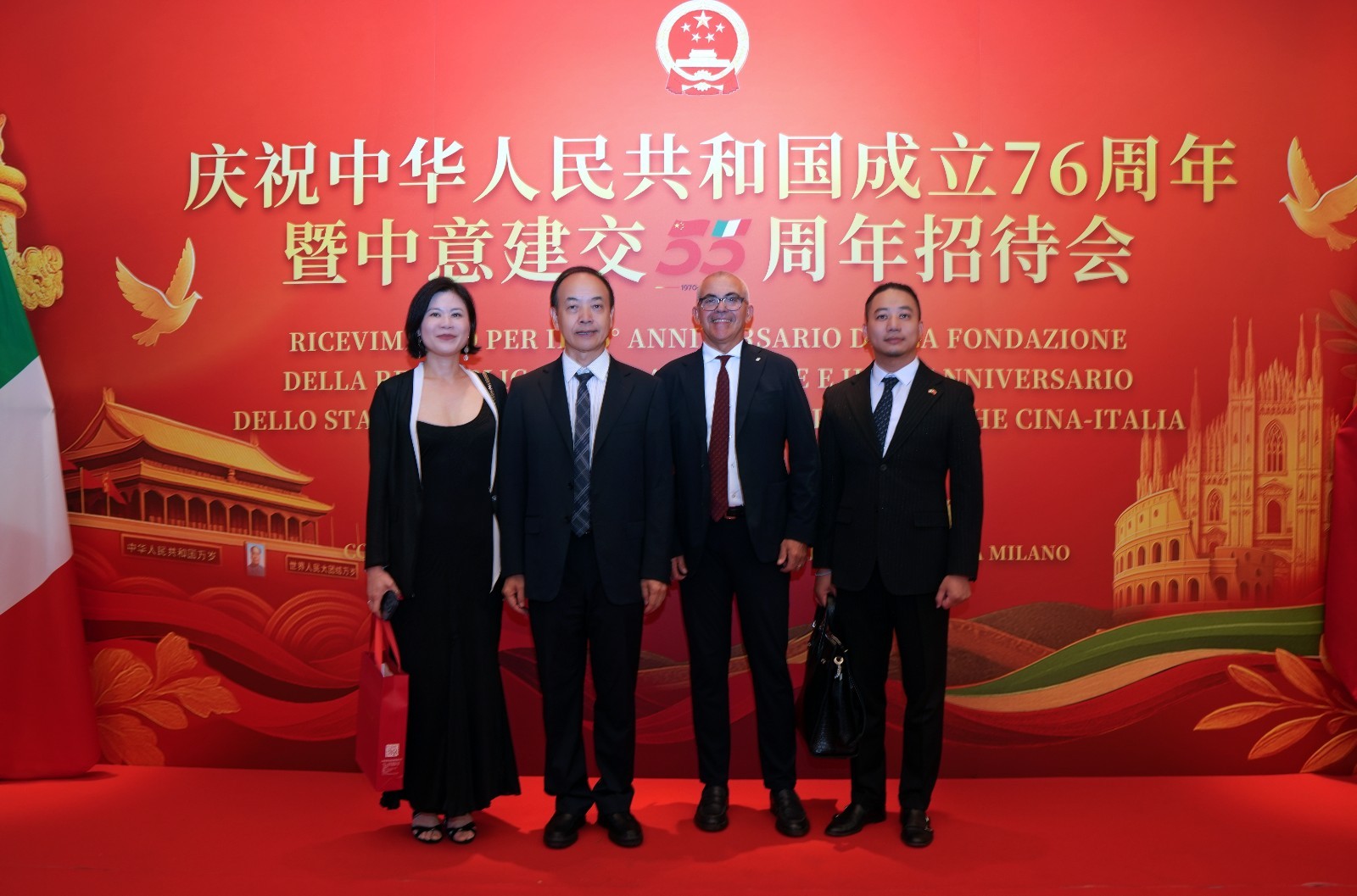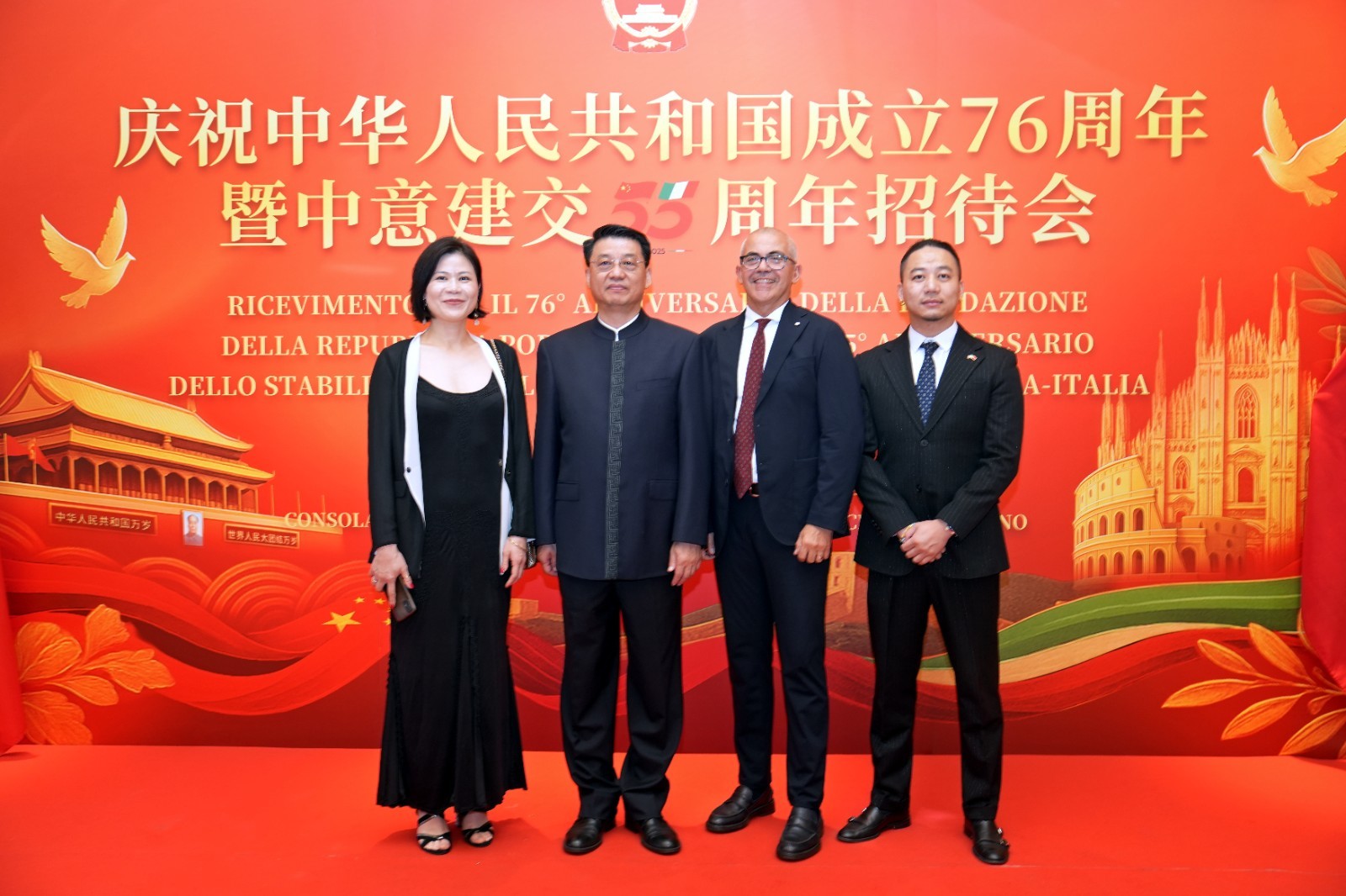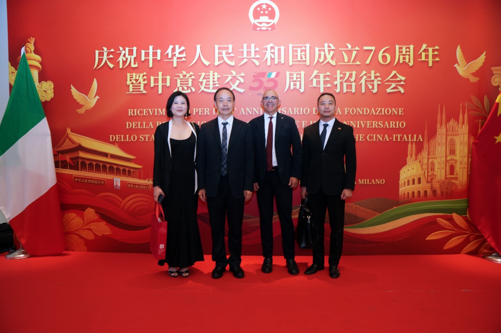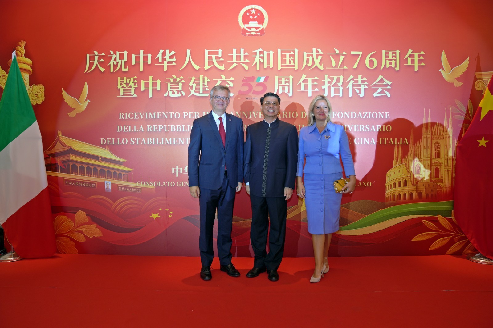 欧洲壹佰君2025年9月20日意大利米兰电:9月19日,中国驻米兰总领事馆在米兰皇家花园酒店隆重举办庆祝中华人民共和国成立76周年暨中意建交55周年招待会。