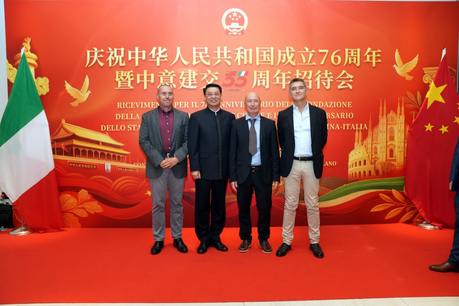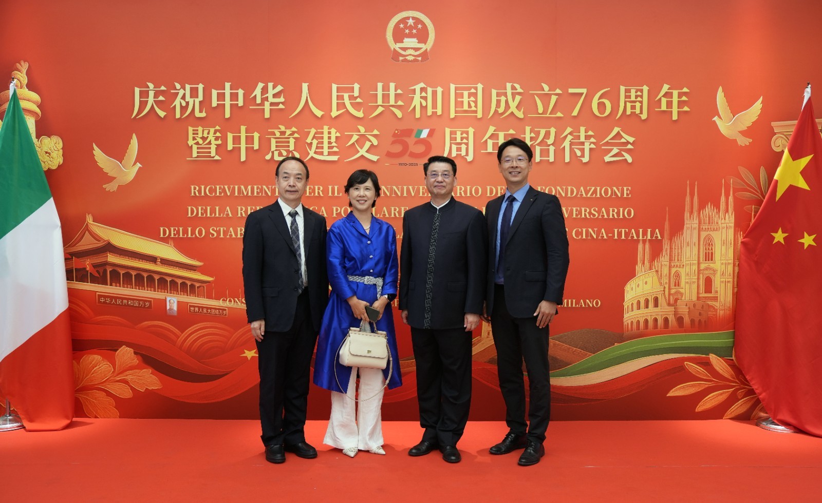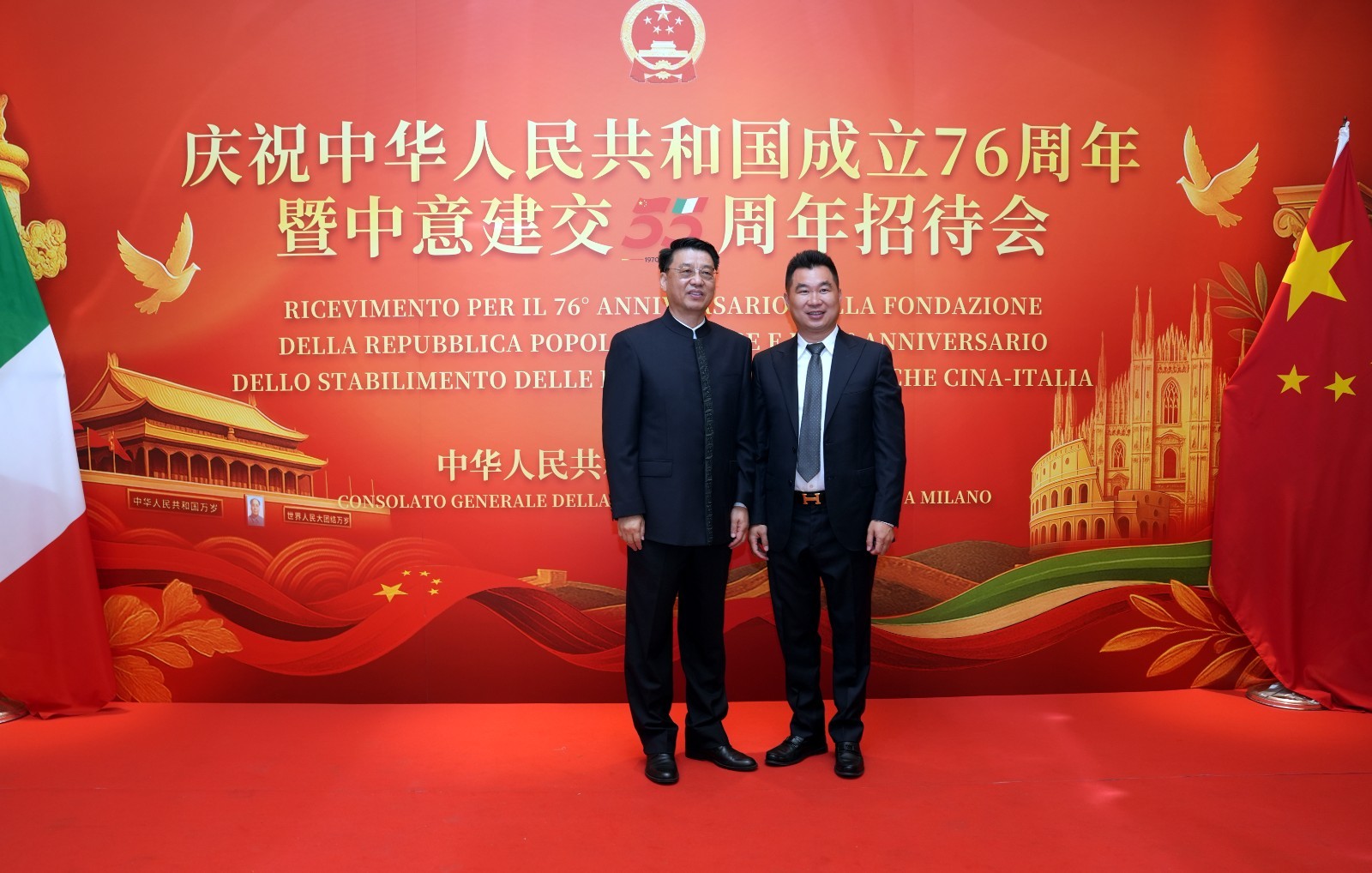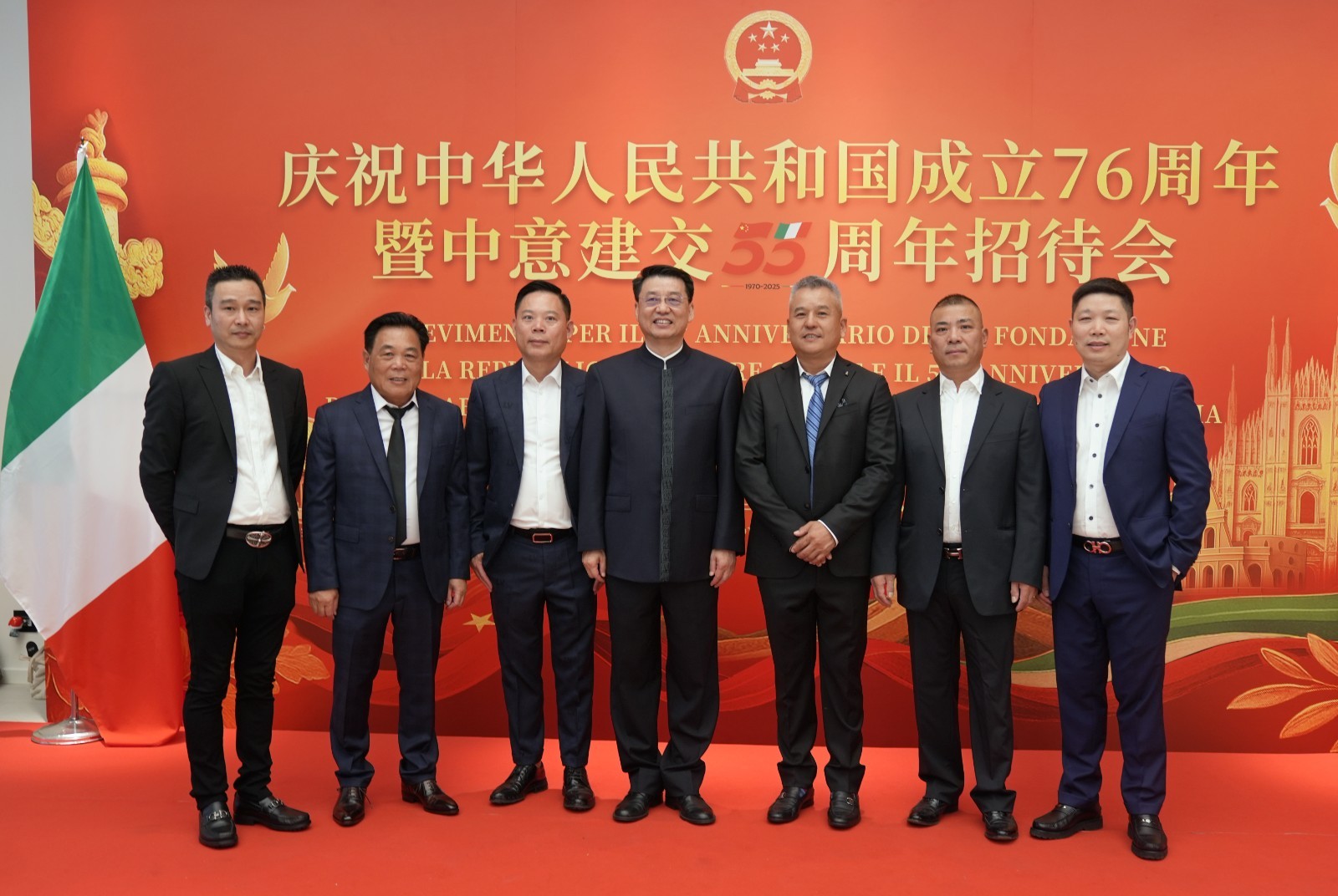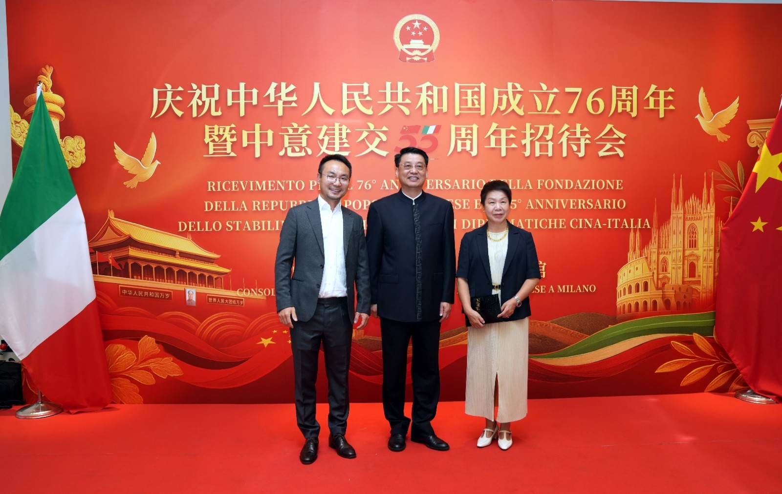 欧洲壹佰君2025年9月20日意大利米兰电:9月19日,中国驻米兰总领事馆在米兰皇家花园酒店隆重举办庆祝中华人民共和国成立76周年暨中意建交55周年招待会。