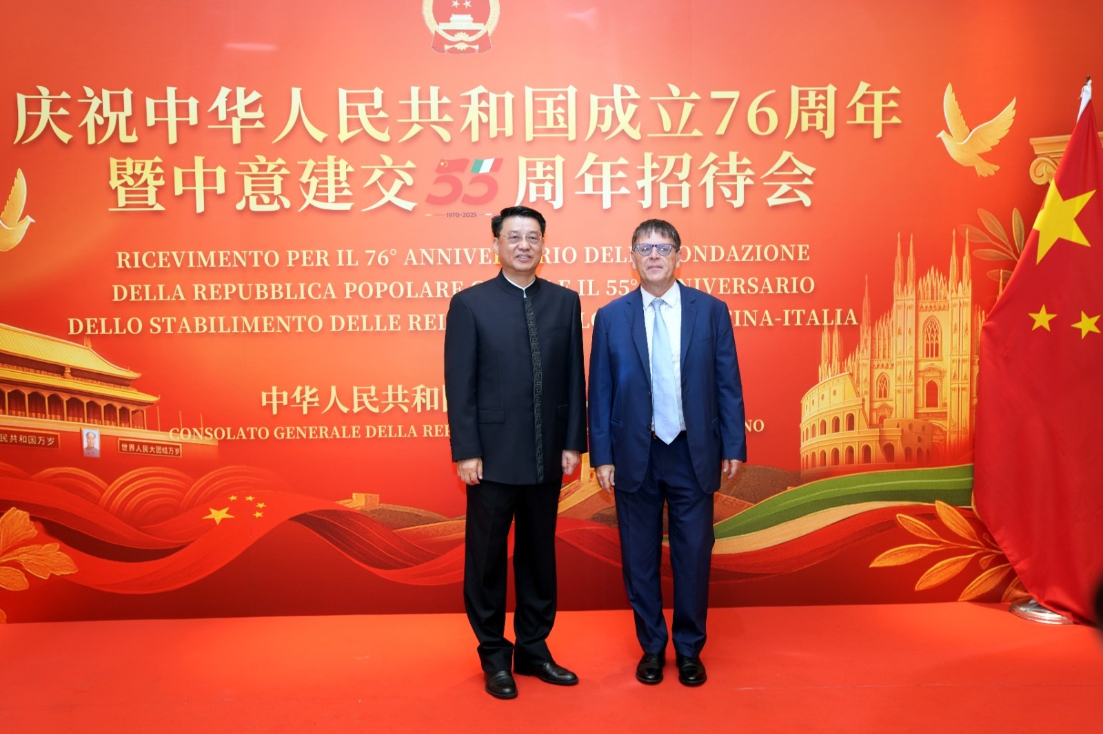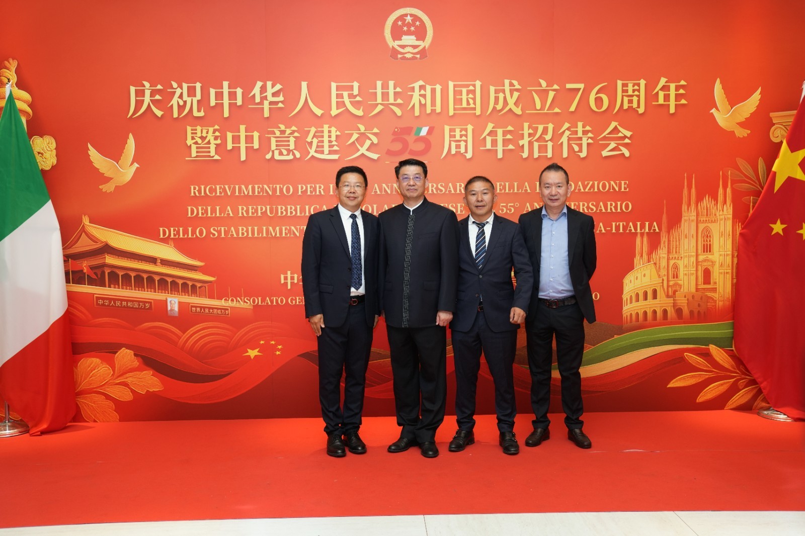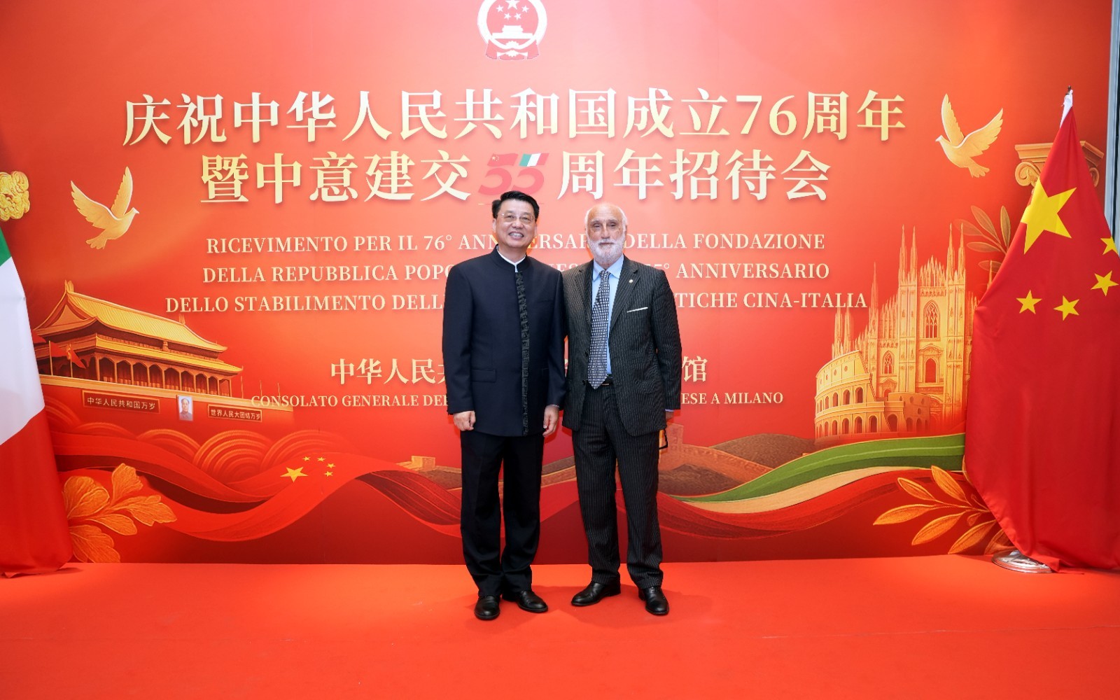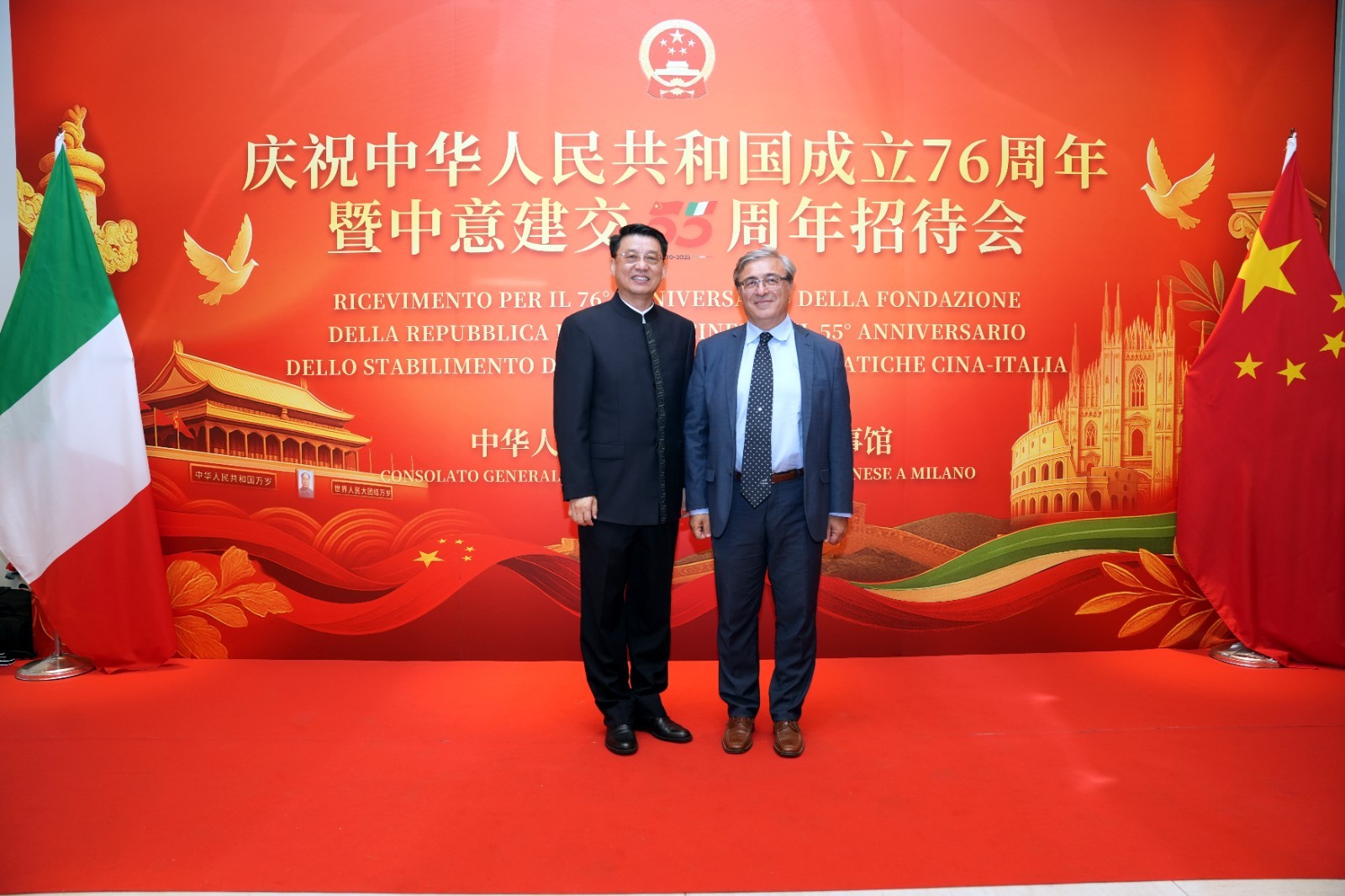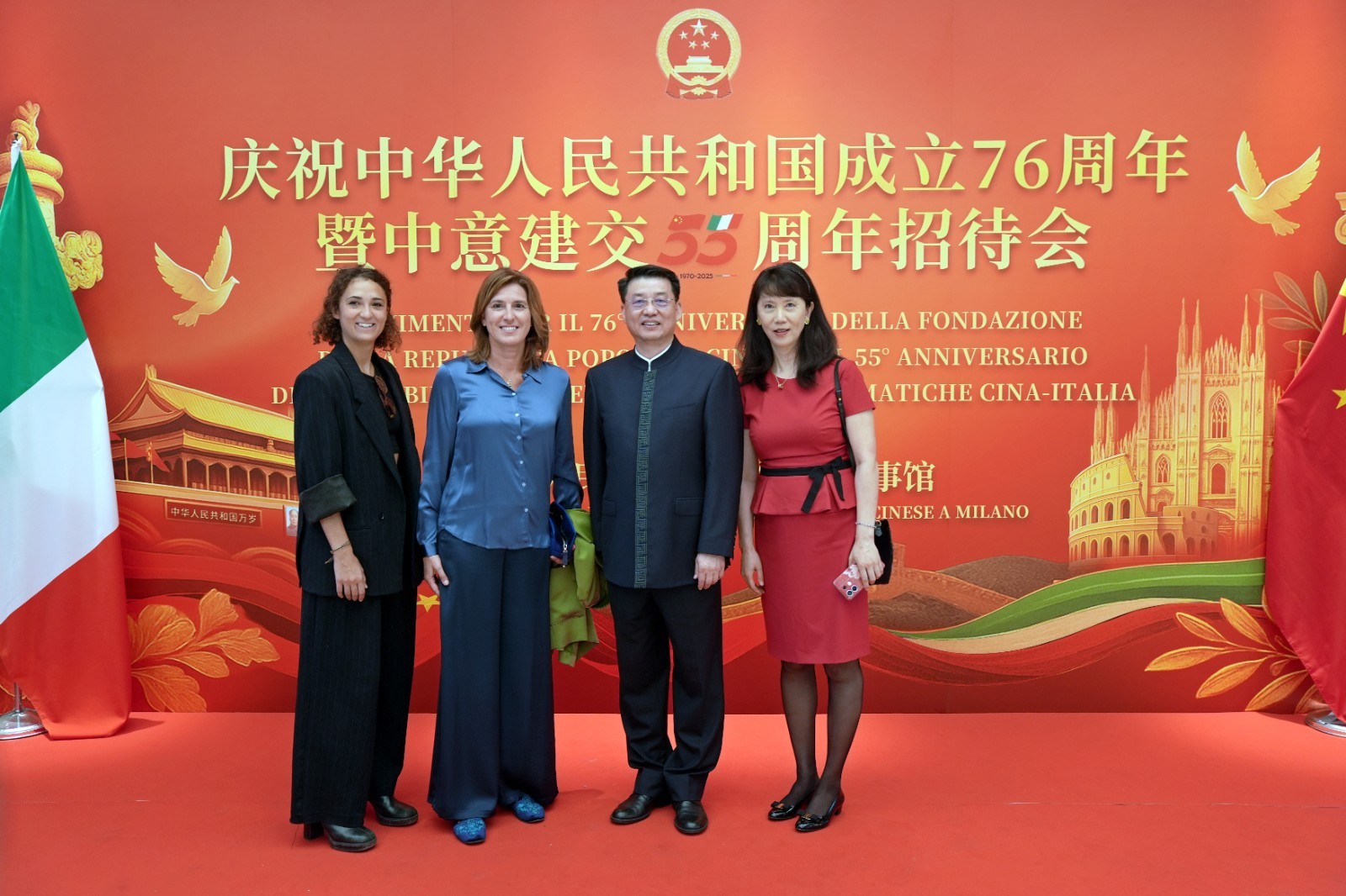 欧洲壹佰君2025年9月20日意大利米兰电:9月19日,中国驻米兰总领事馆在米兰皇家花园酒店隆重举办庆祝中华人民共和国成立76周年暨中意建交55周年招待会。