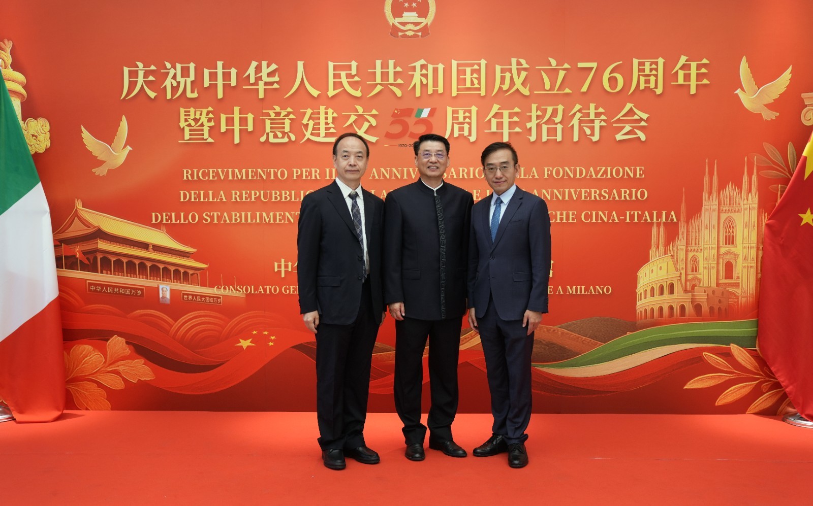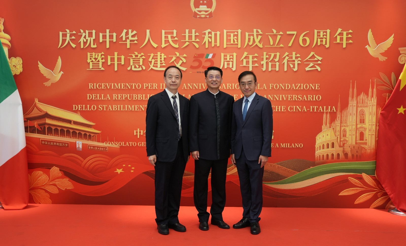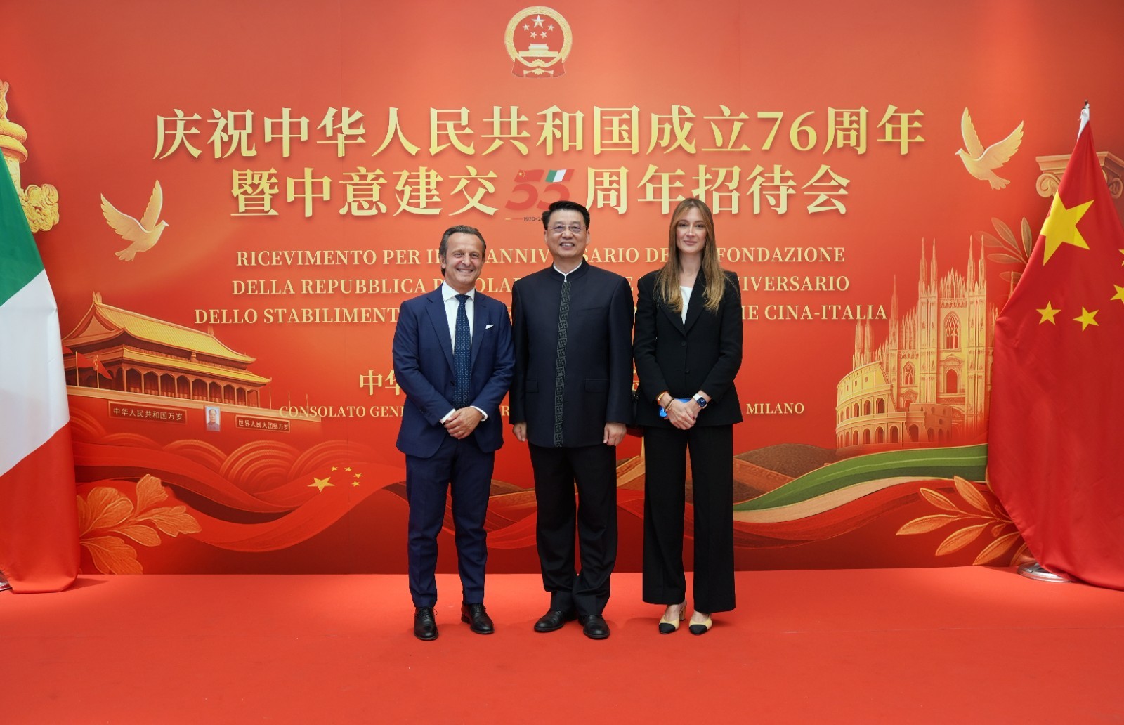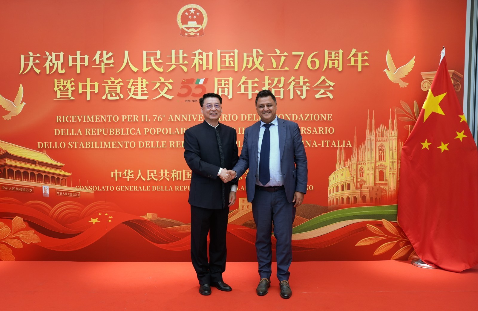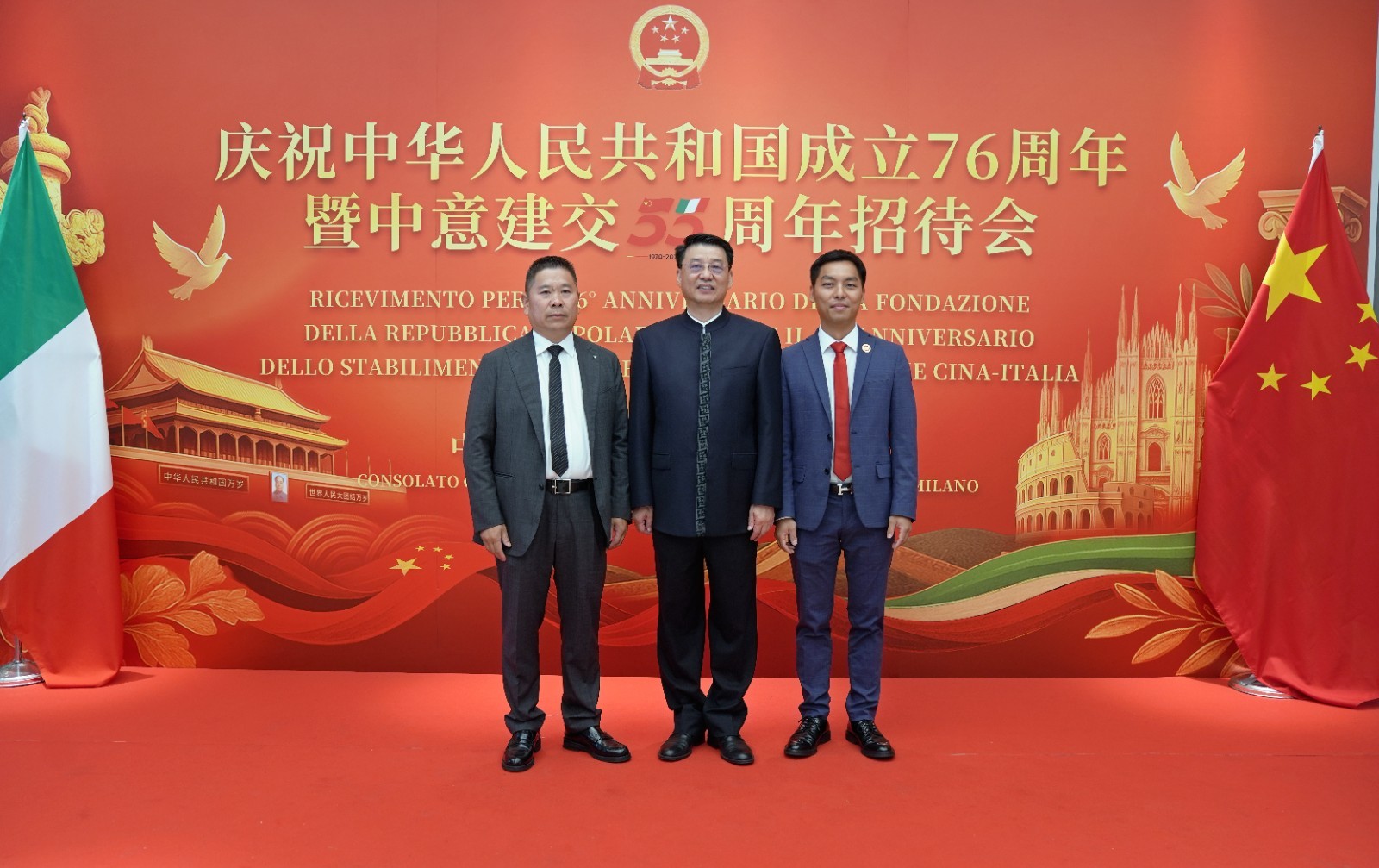 欧洲壹佰君2025年9月20日意大利米兰电:9月19日,中国驻米兰总领事馆在米兰皇家花园酒店隆重举办庆祝中华人民共和国成立76周年暨中意建交55周年招待会。