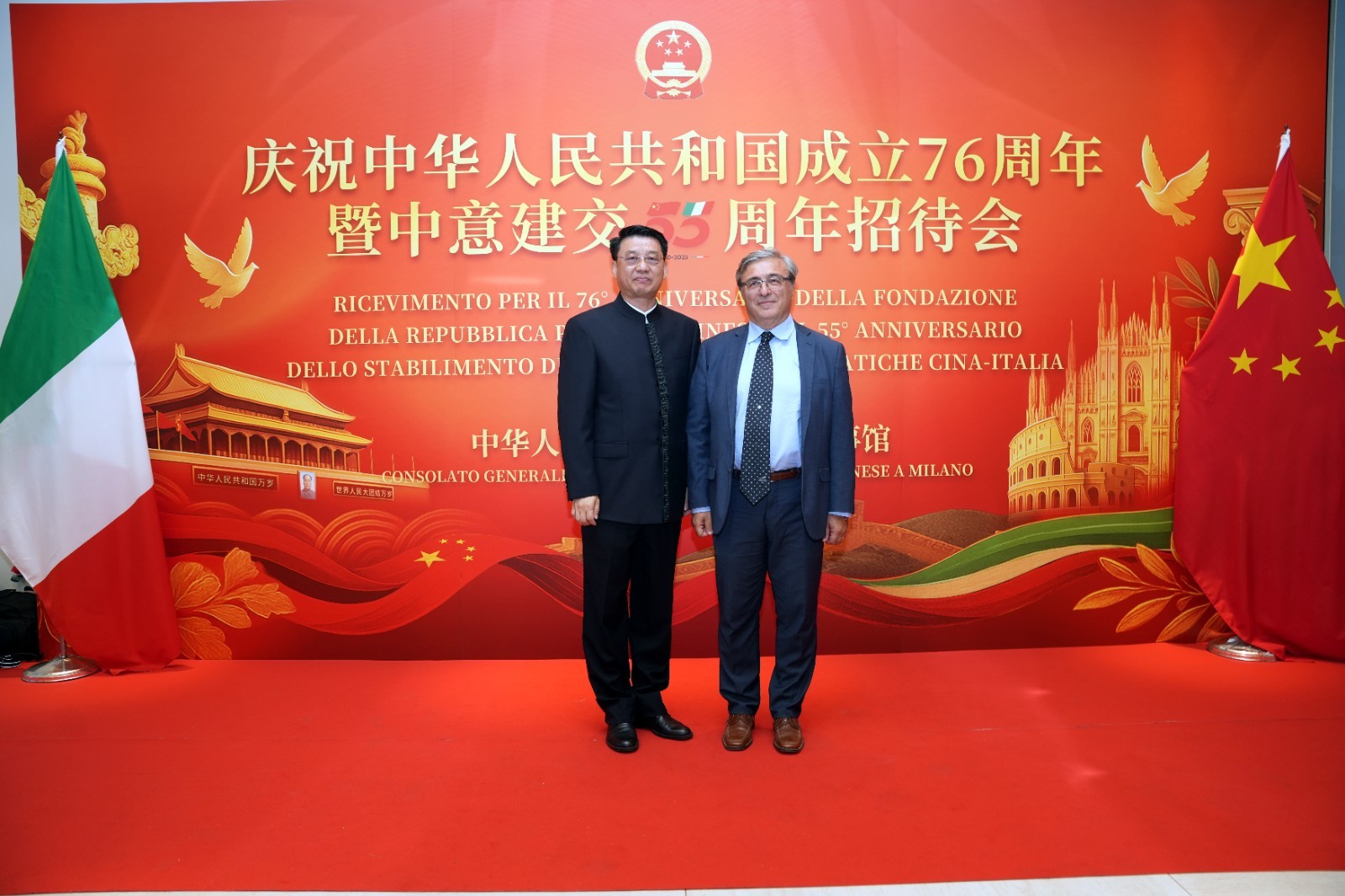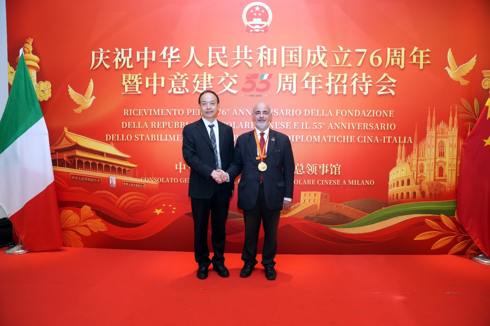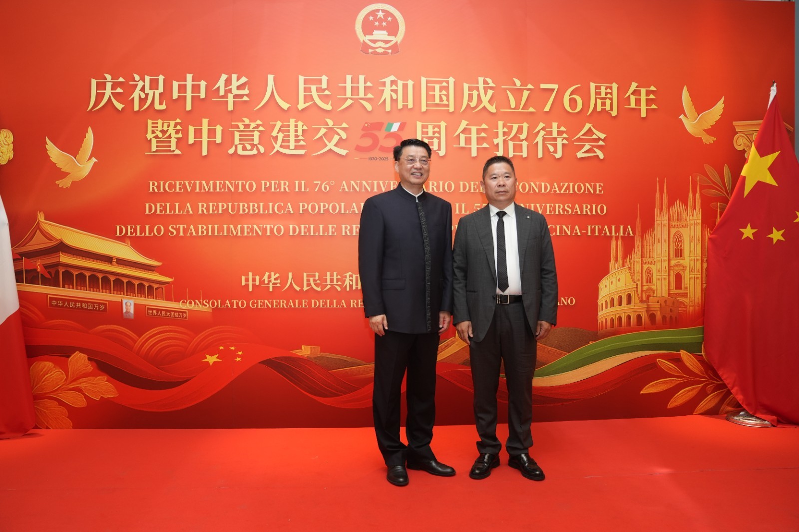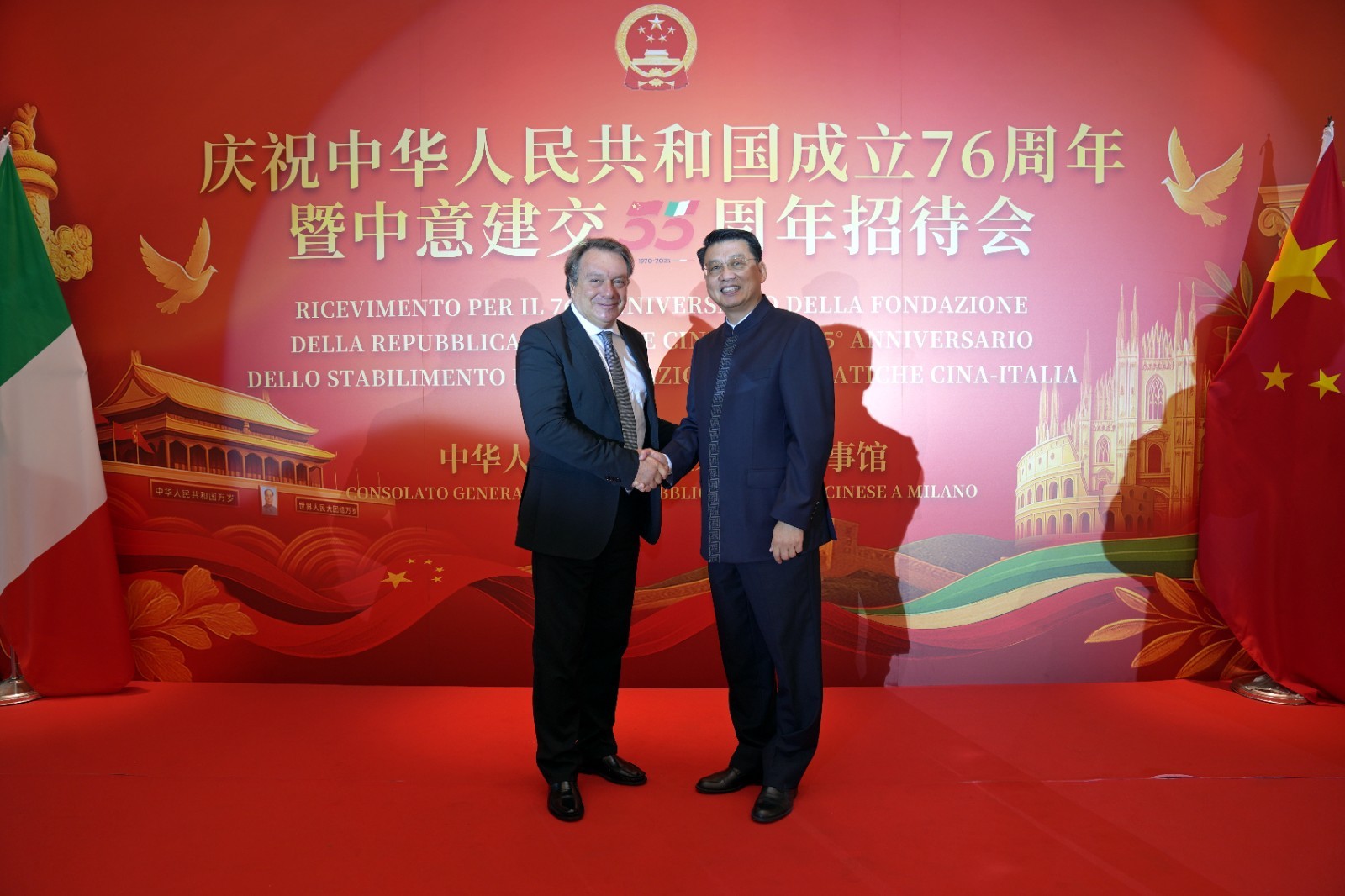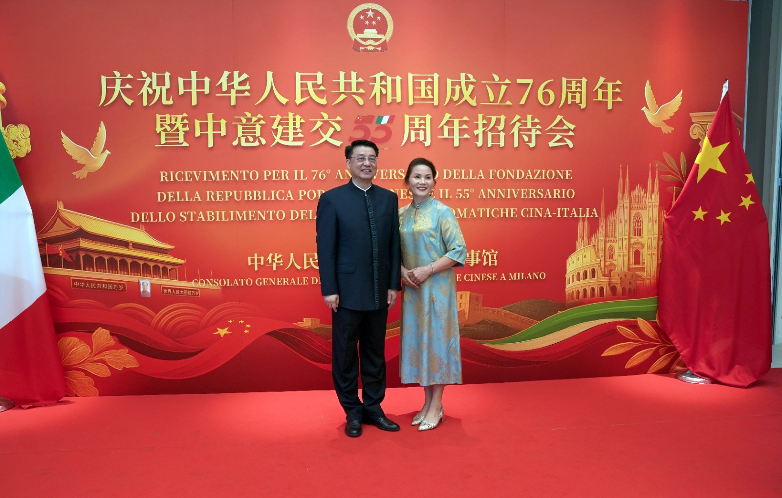 欧洲壹佰君2025年9月20日意大利米兰电:9月19日,中国驻米兰总领事馆在米兰皇家花园酒店隆重举办庆祝中华人民共和国成立76周年暨中意建交55周年招待会。