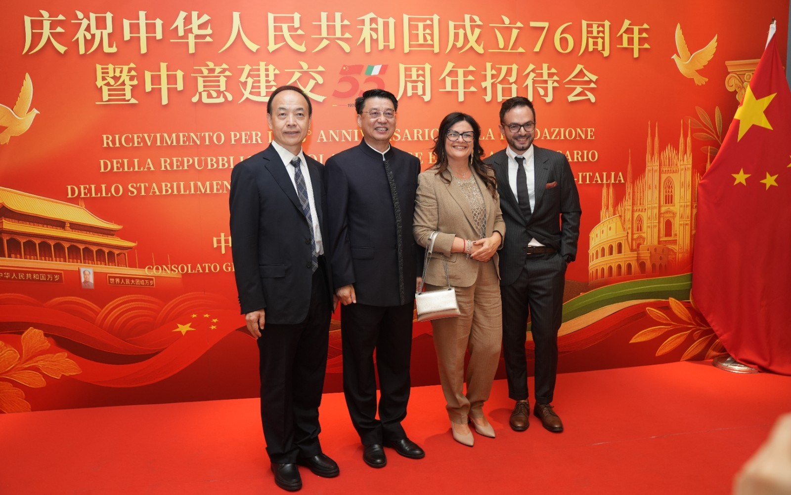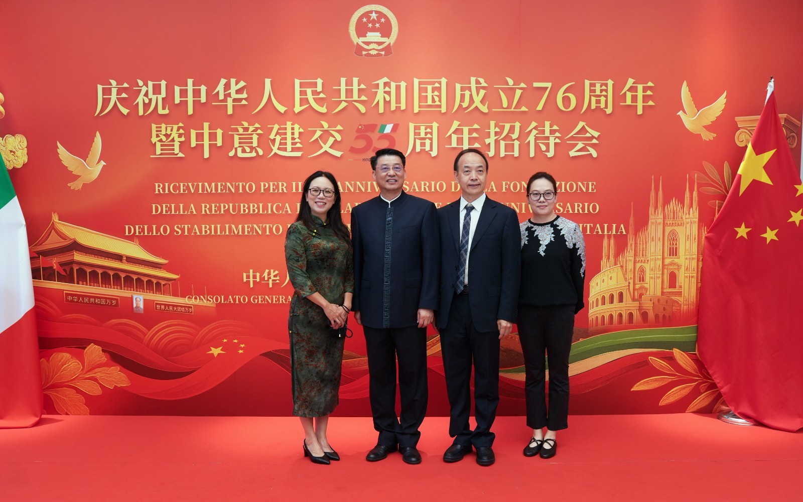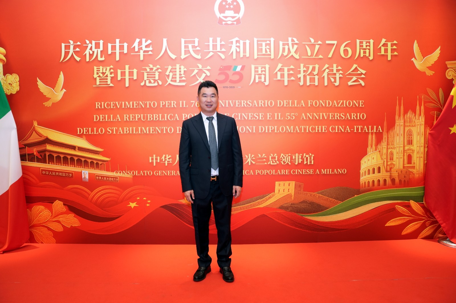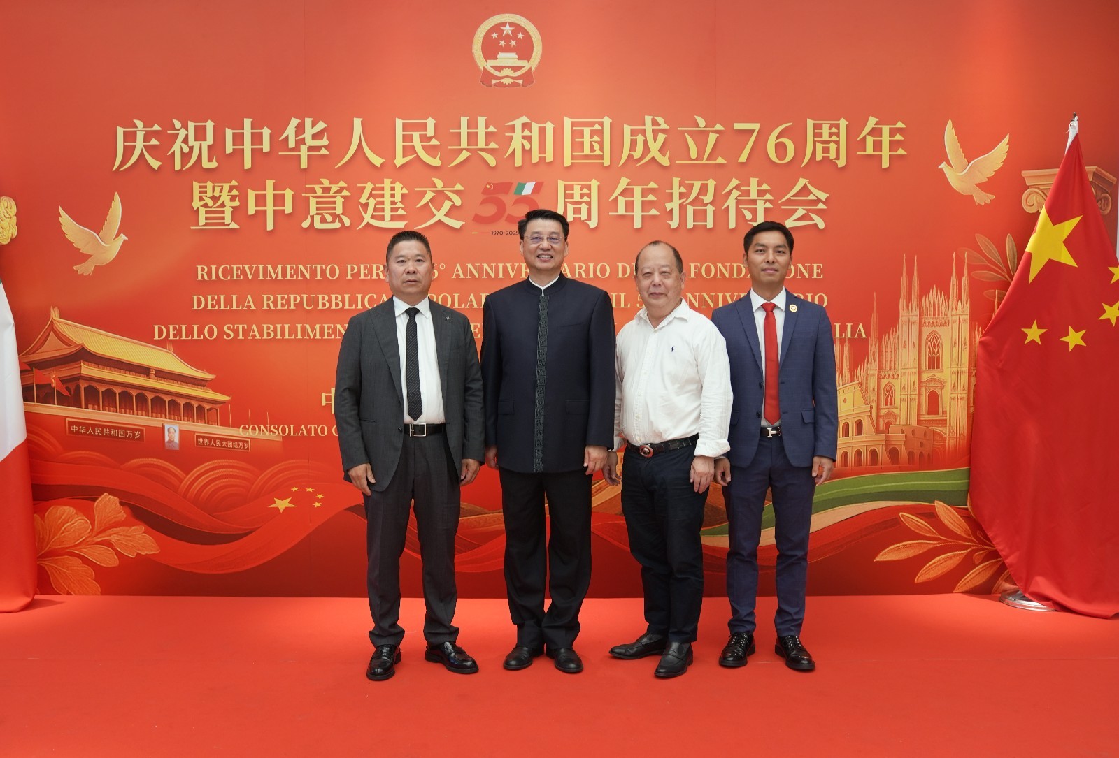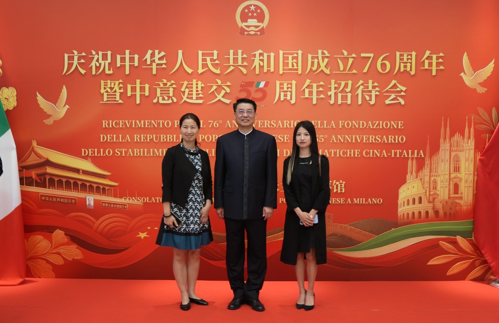 欧洲壹佰君2025年9月20日意大利米兰电:9月19日,中国驻米兰总领事馆在米兰皇家花园酒店隆重举办庆祝中华人民共和国成立76周年暨中意建交55周年招待会。