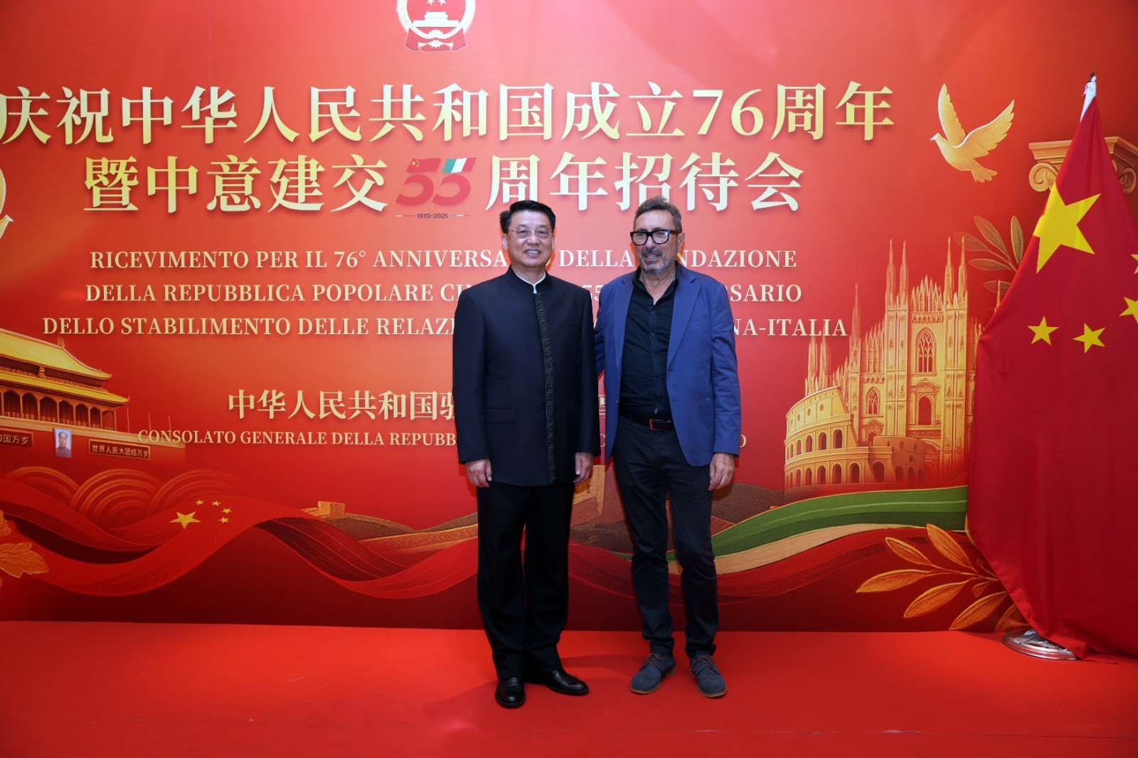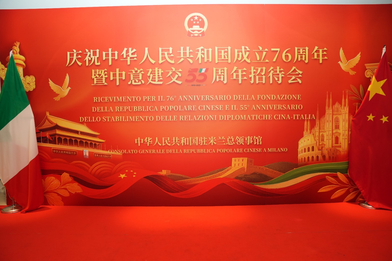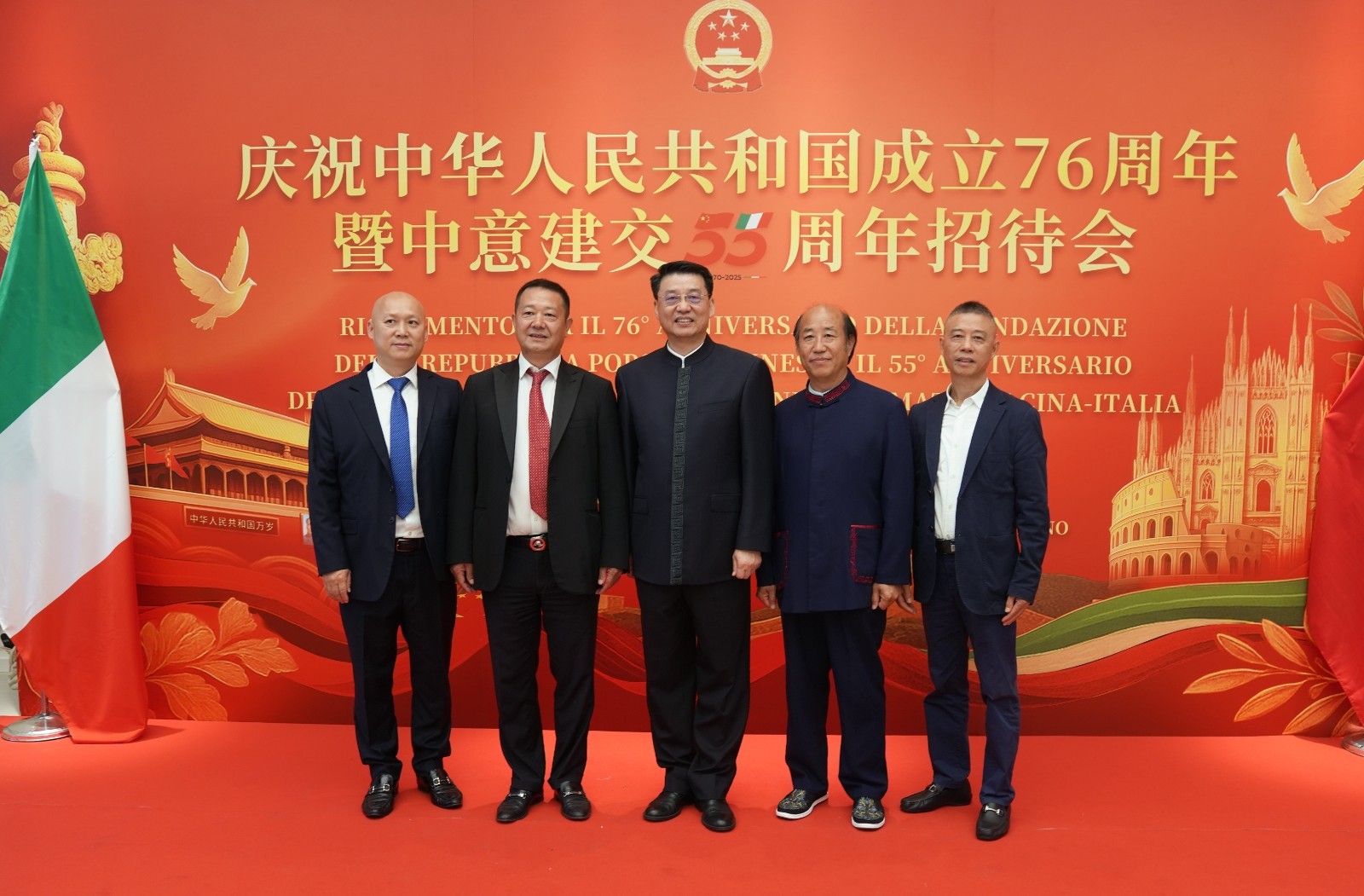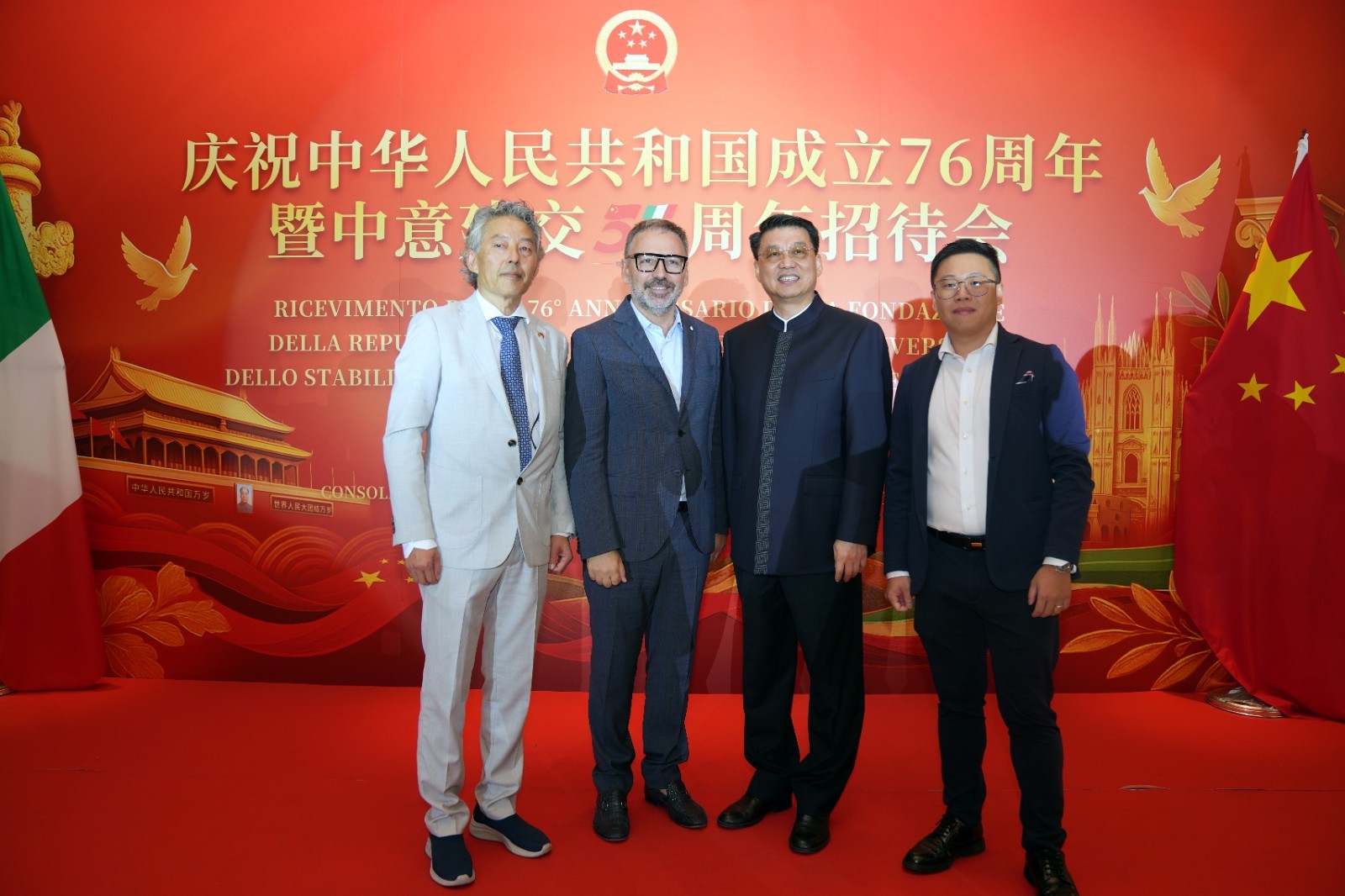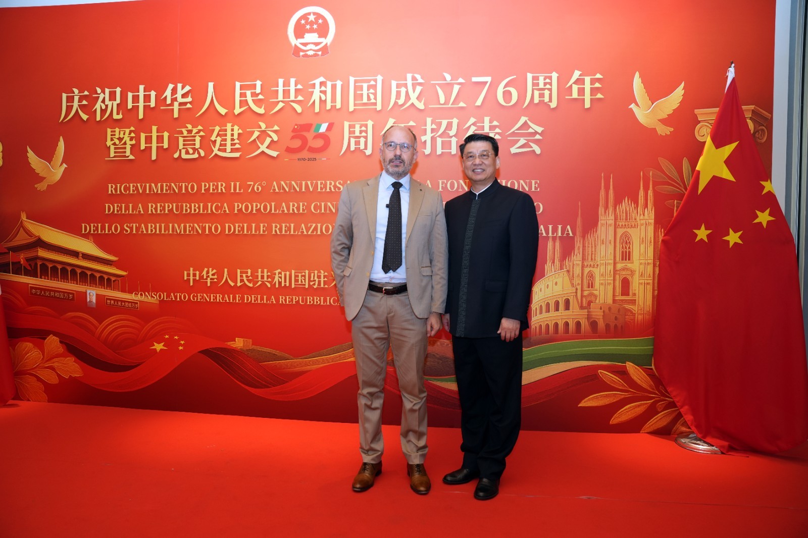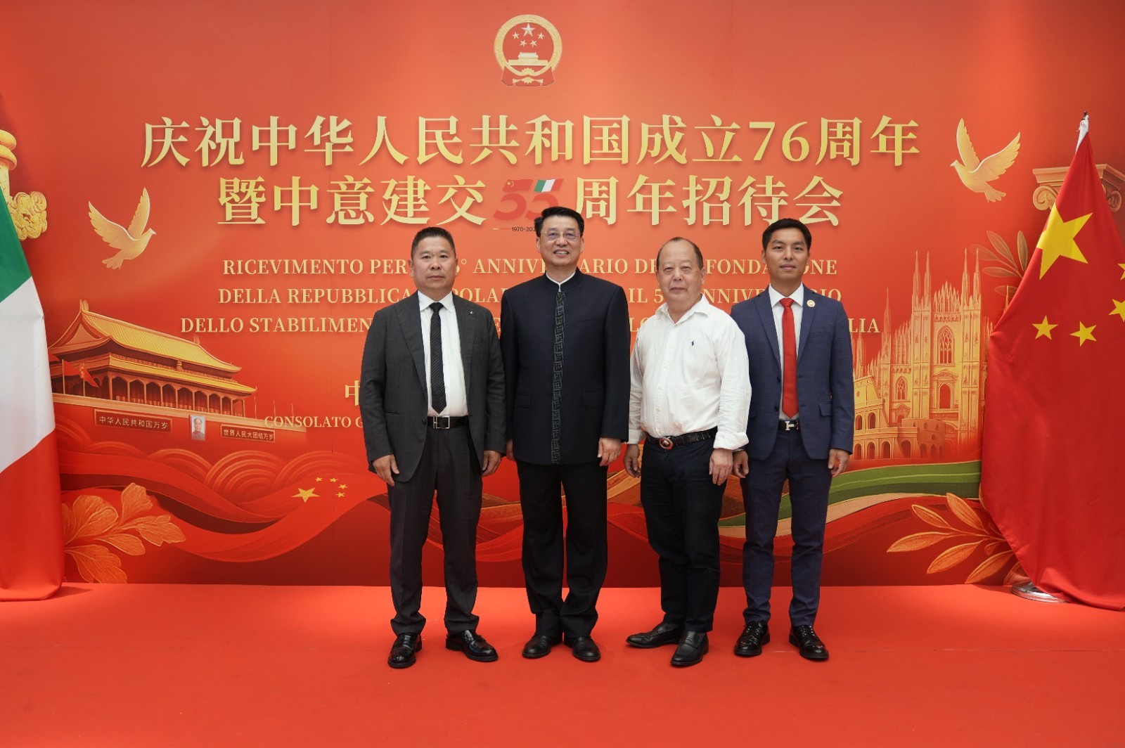欧洲壹佰君2025年9月20日意大利米兰电:9月19日,中国驻米兰总领事馆在米兰皇家花园酒店隆重举办庆祝中华人民共和国成立76周年暨中意建交55周年招待会。