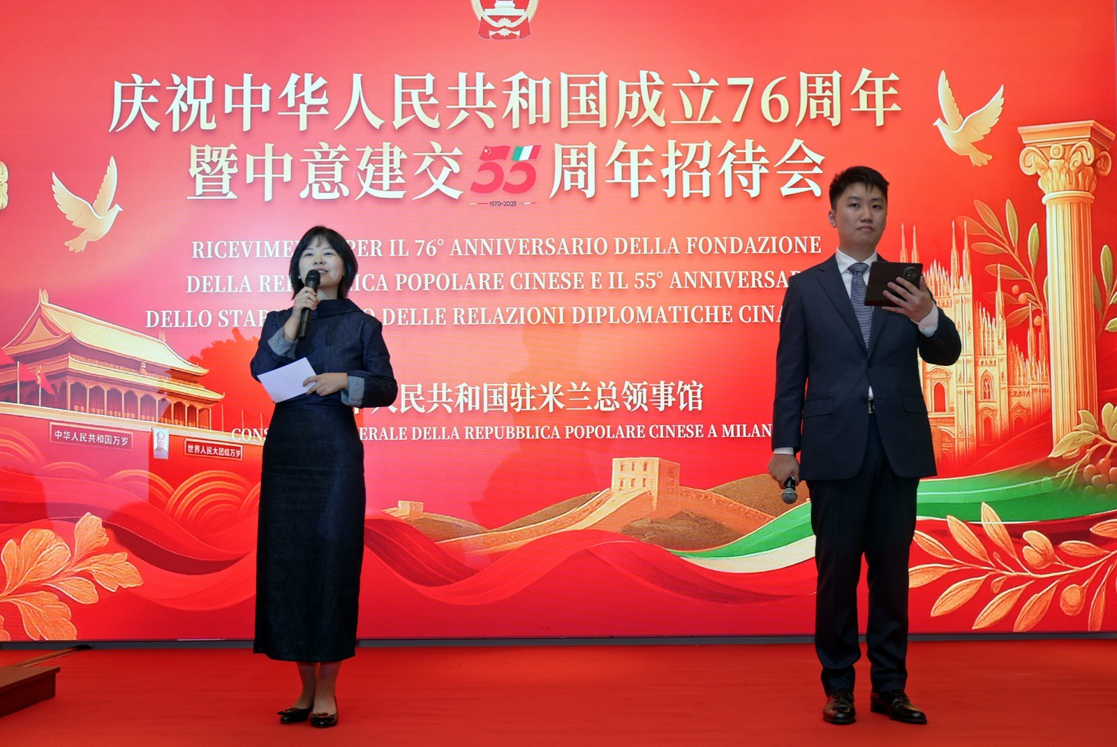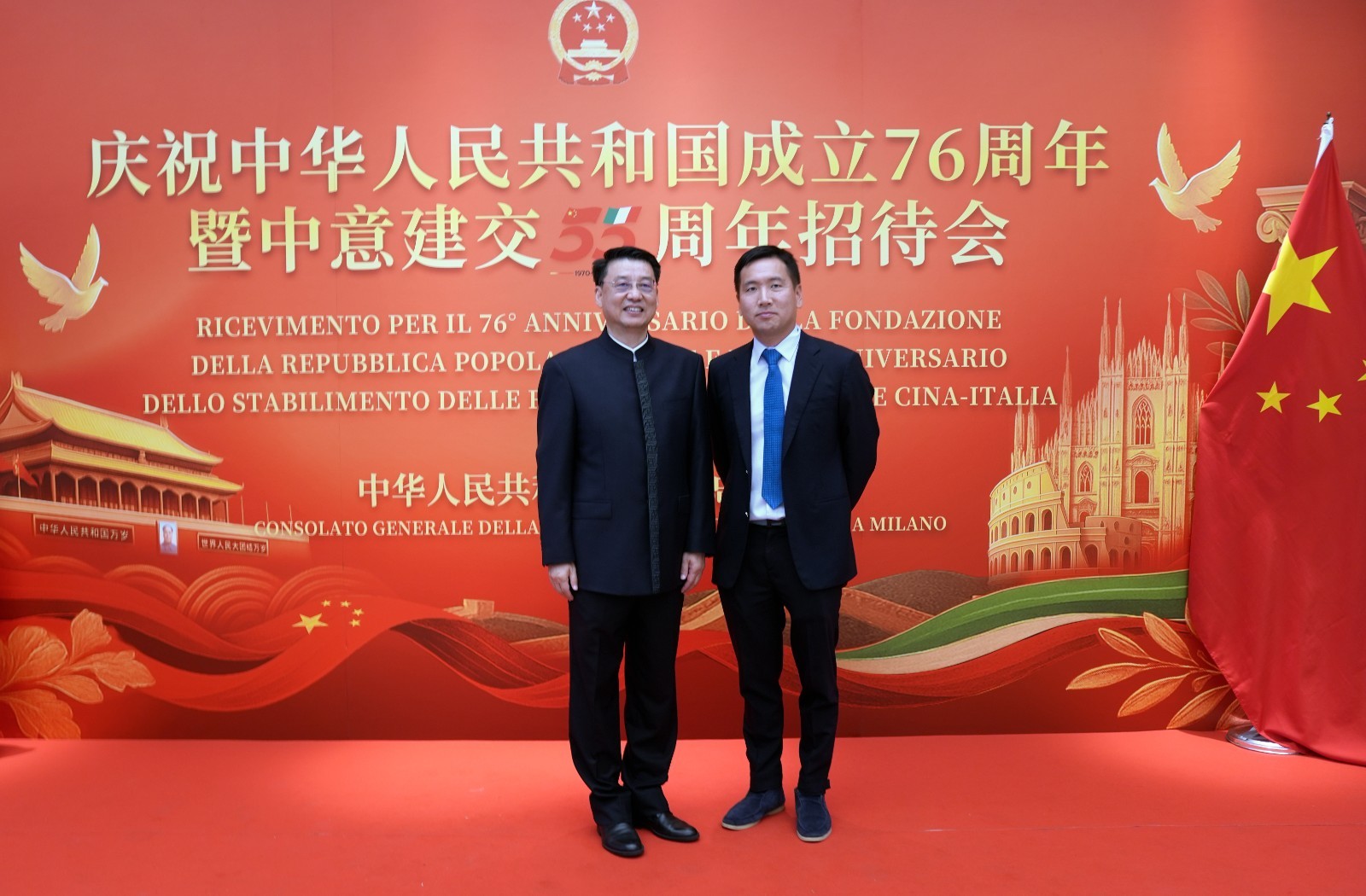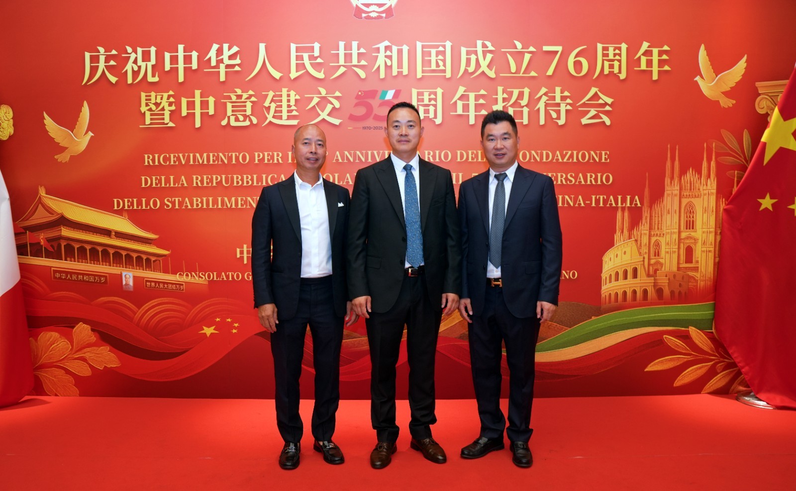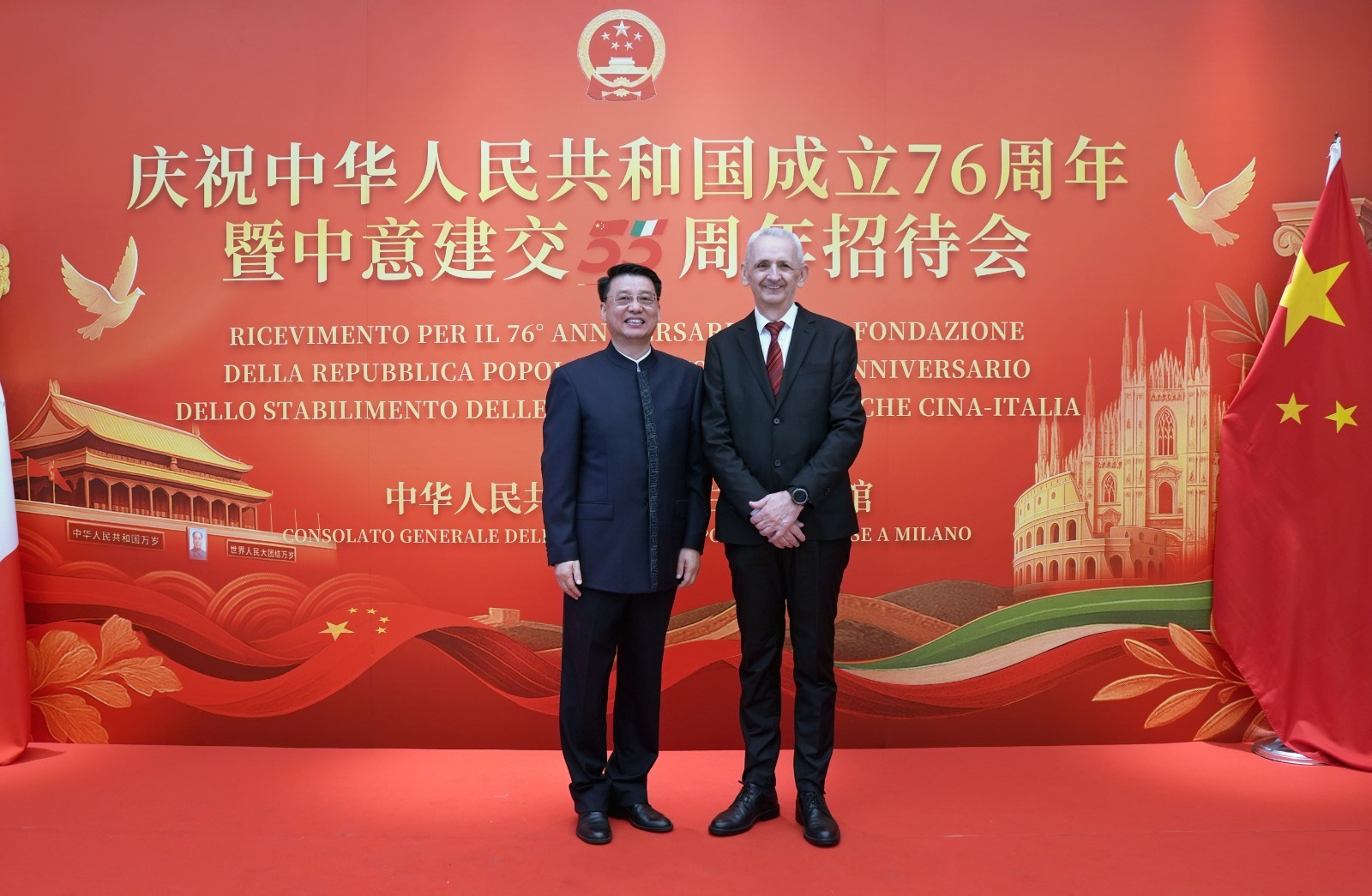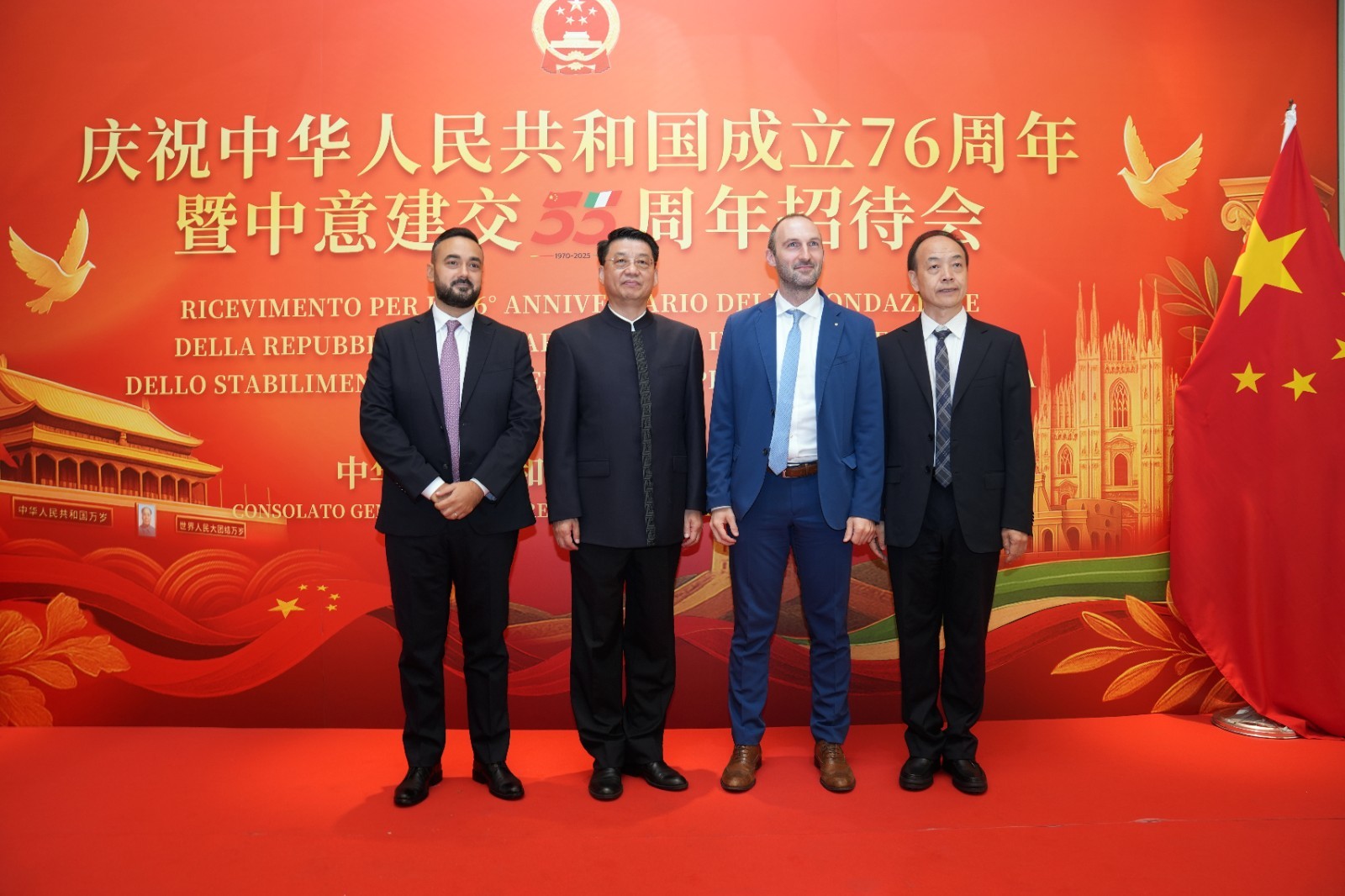 欧洲壹佰君2025年9月20日意大利米兰电:9月19日,中国驻米兰总领事馆在米兰皇家花园酒店隆重举办庆祝中华人民共和国成立76周年暨中意建交55周年招待会。