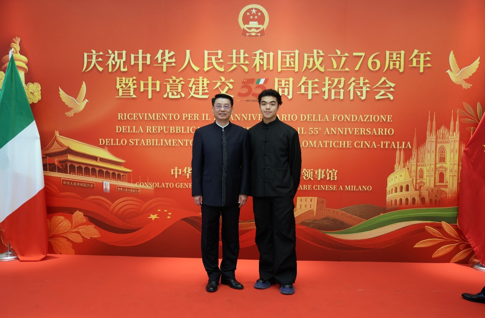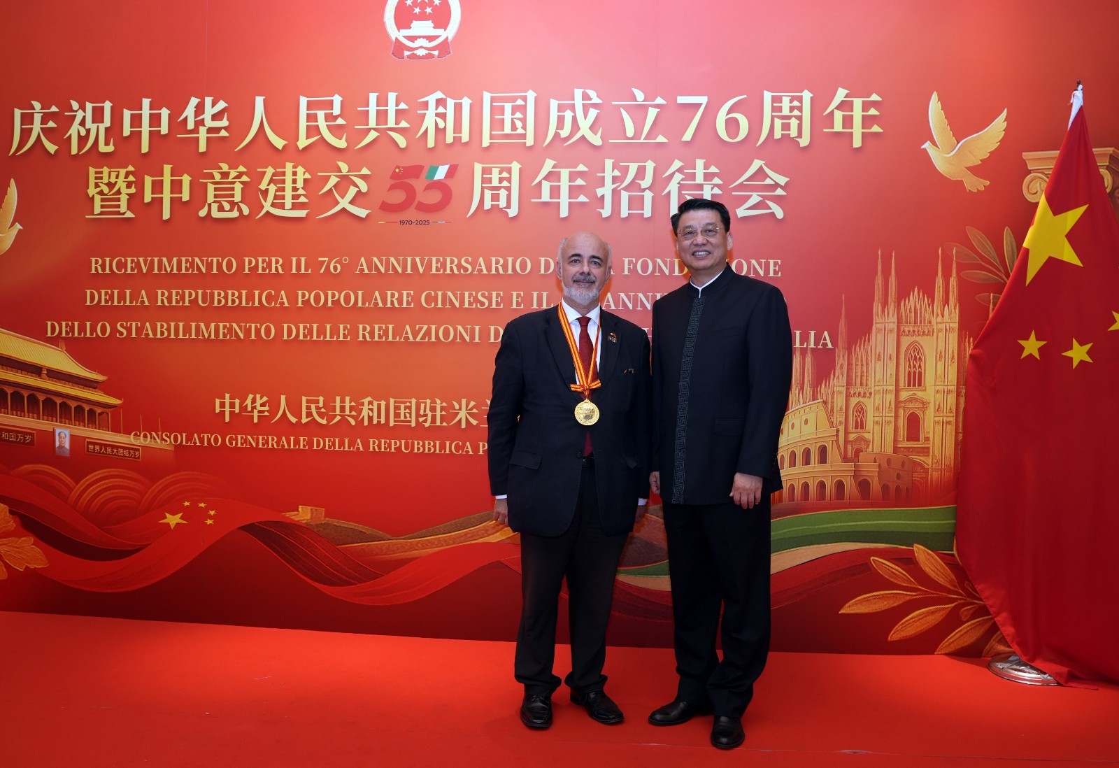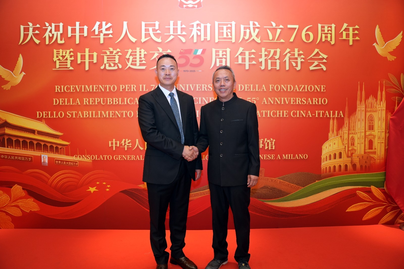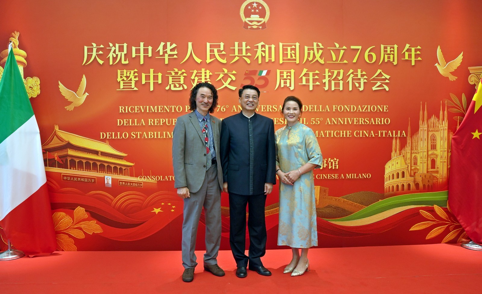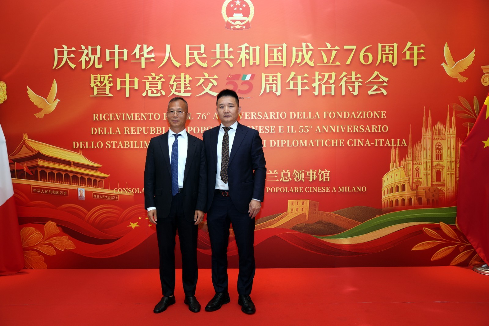 欧洲壹佰君2025年9月20日意大利米兰电:9月19日,中国驻米兰总领事馆在米兰皇家花园酒店隆重举办庆祝中华人民共和国成立76周年暨中意建交55周年招待会。