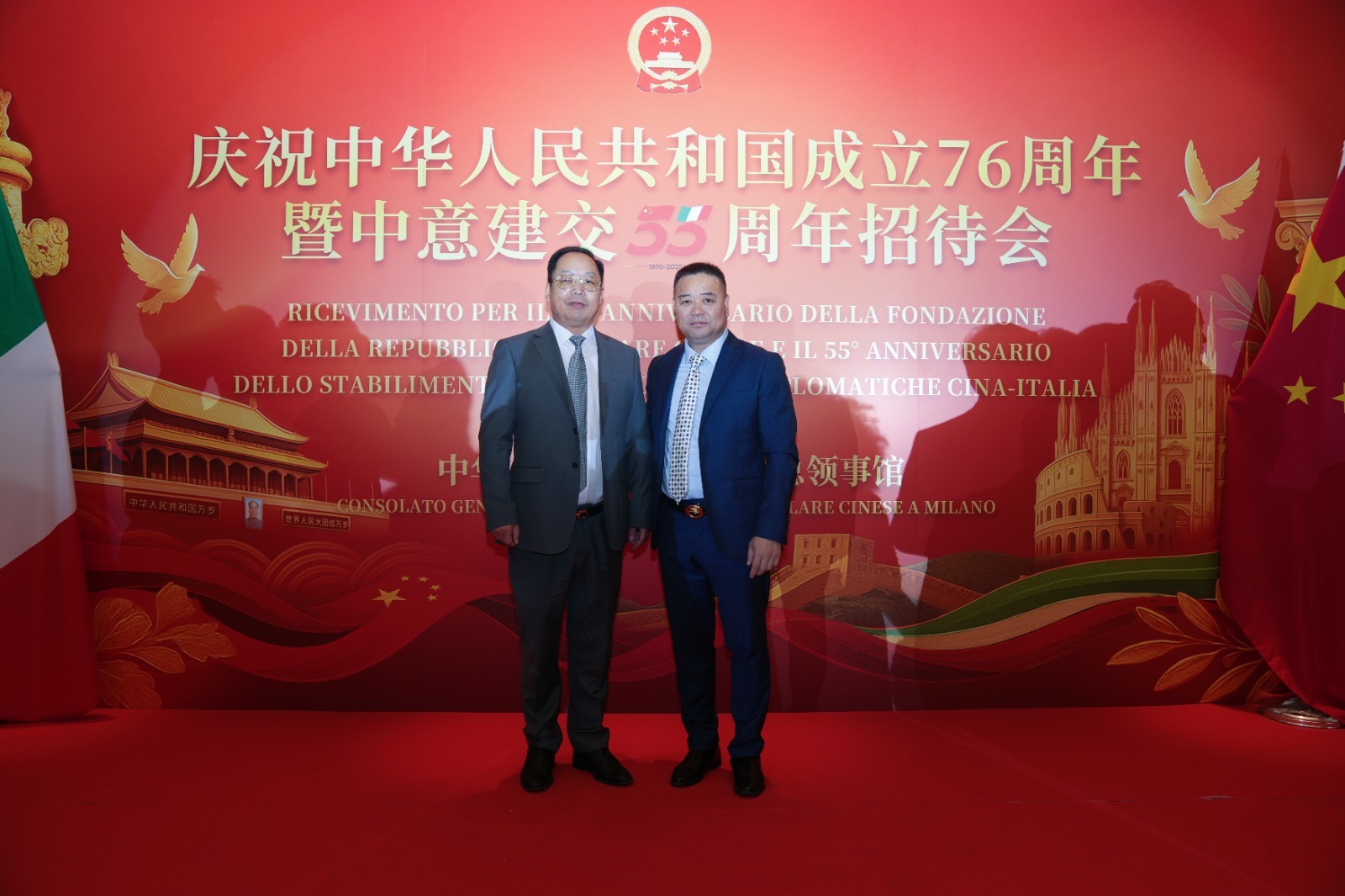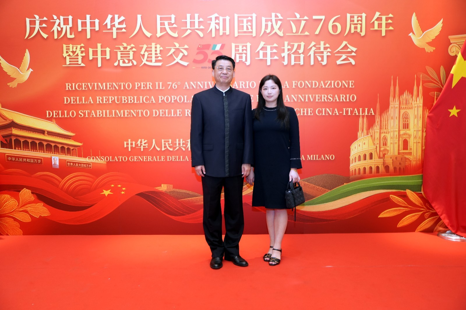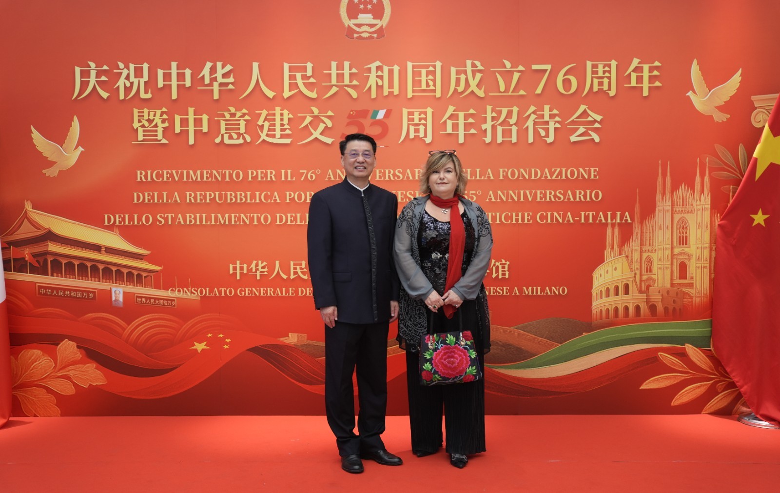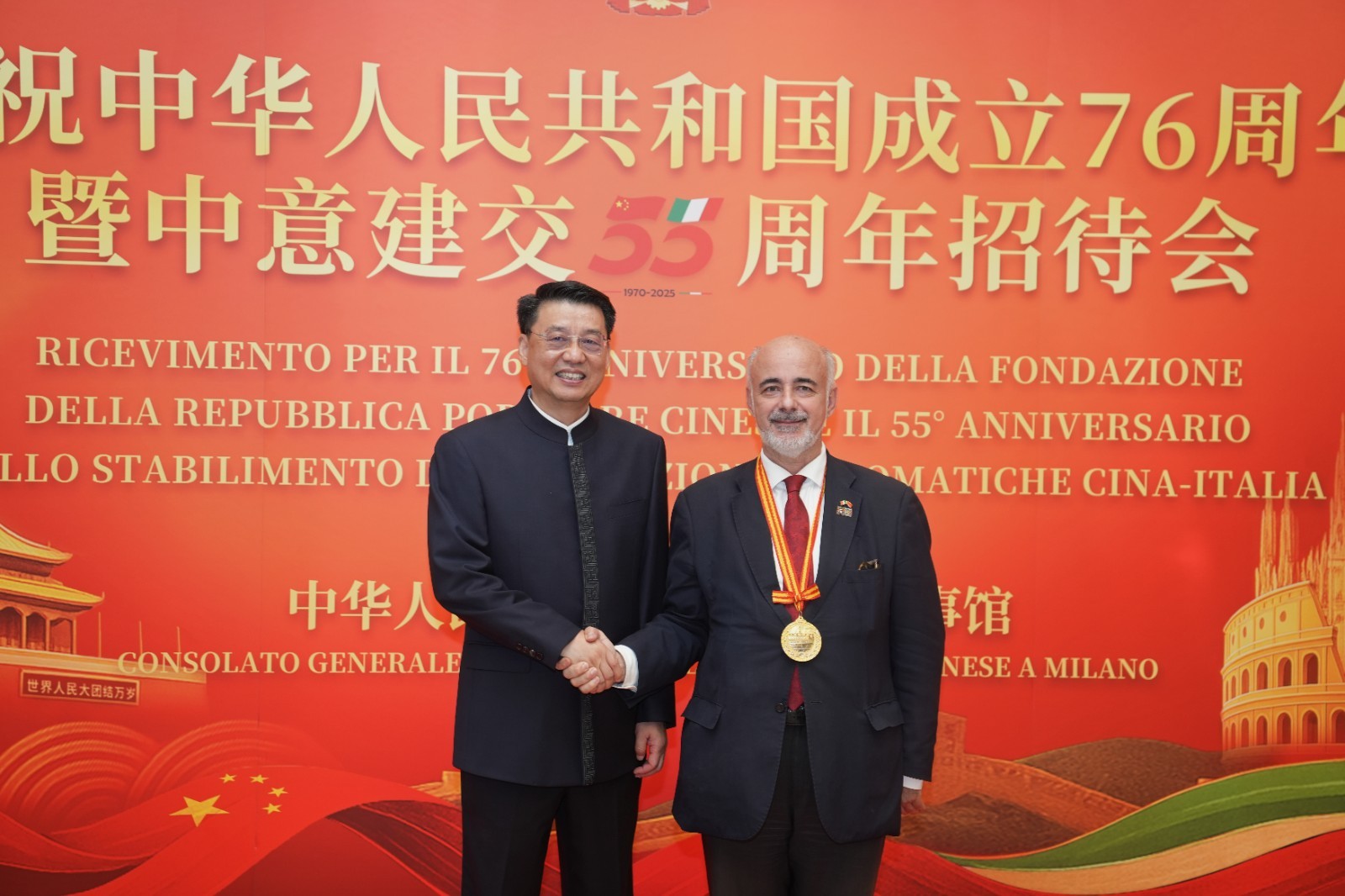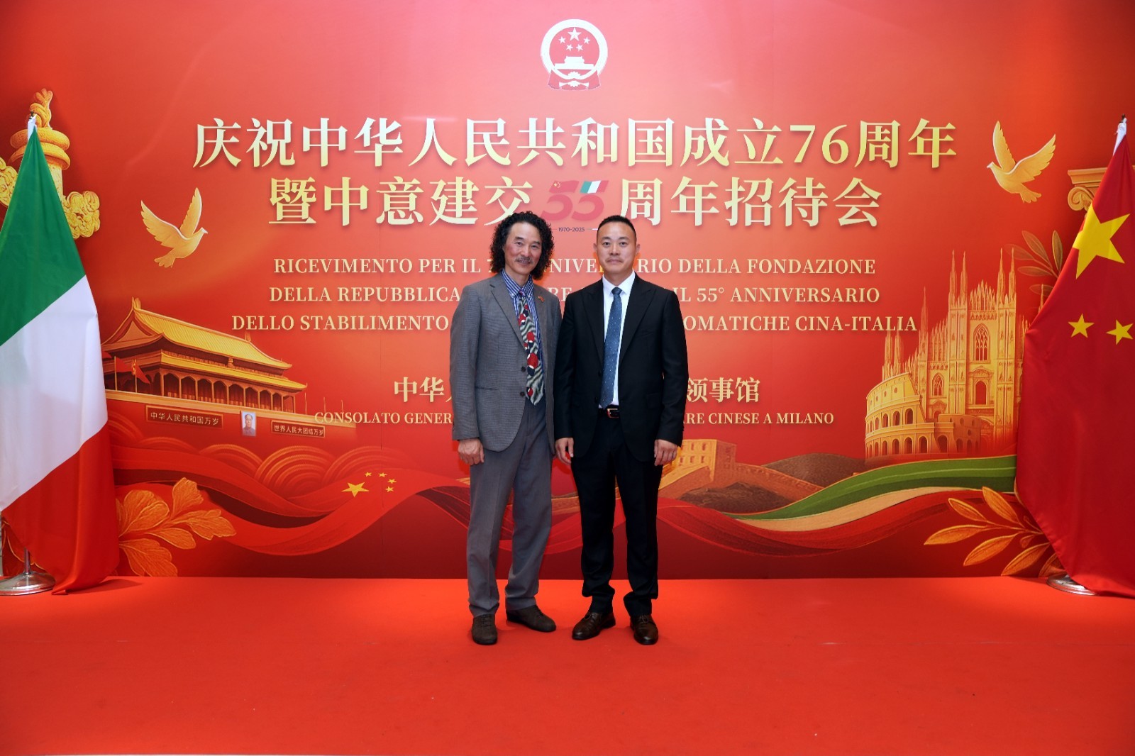 欧洲壹佰君2025年9月20日意大利米兰电:9月19日,中国驻米兰总领事馆在米兰皇家花园酒店隆重举办庆祝中华人民共和国成立76周年暨中意建交55周年招待会。