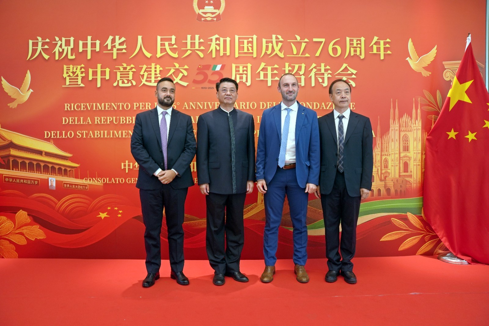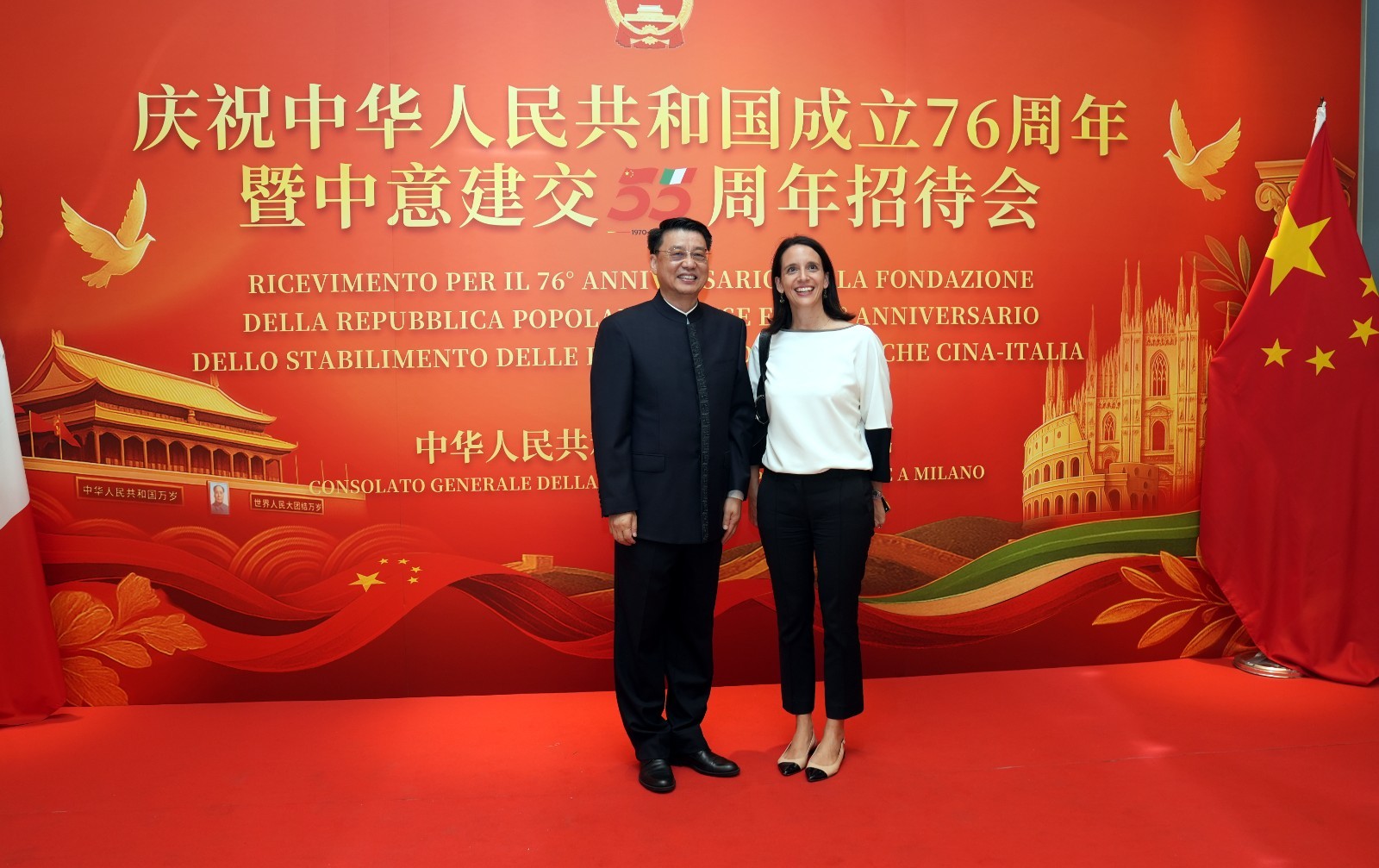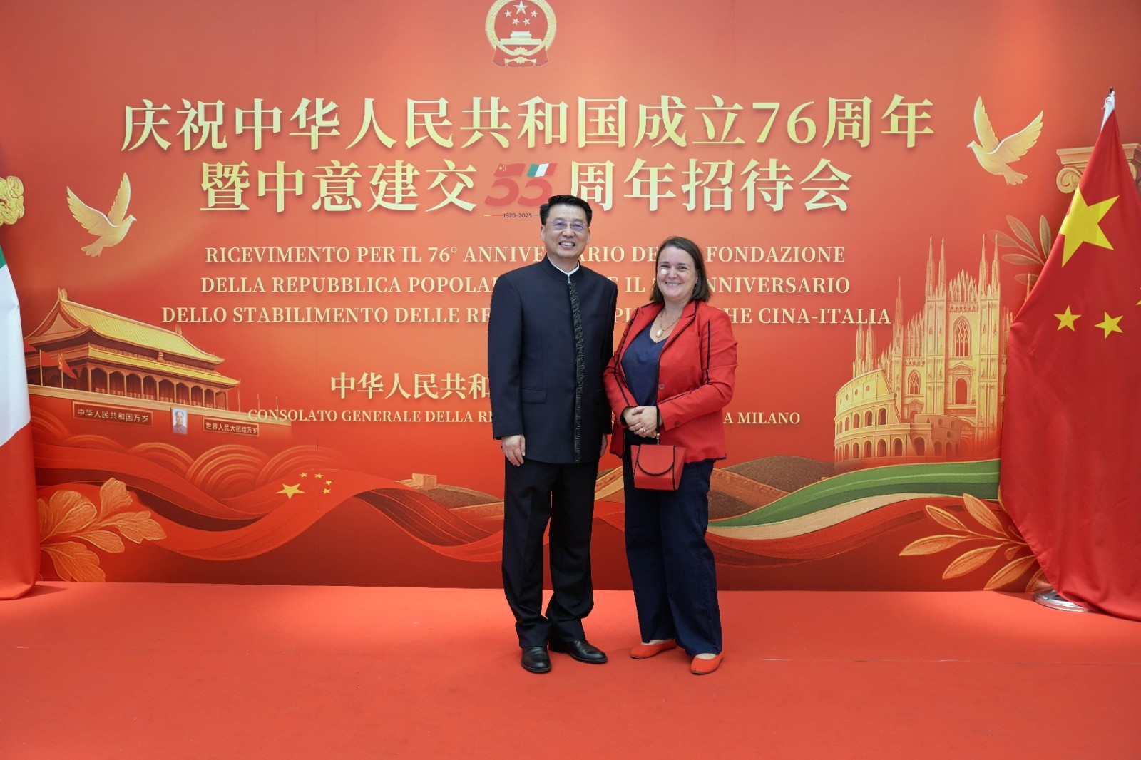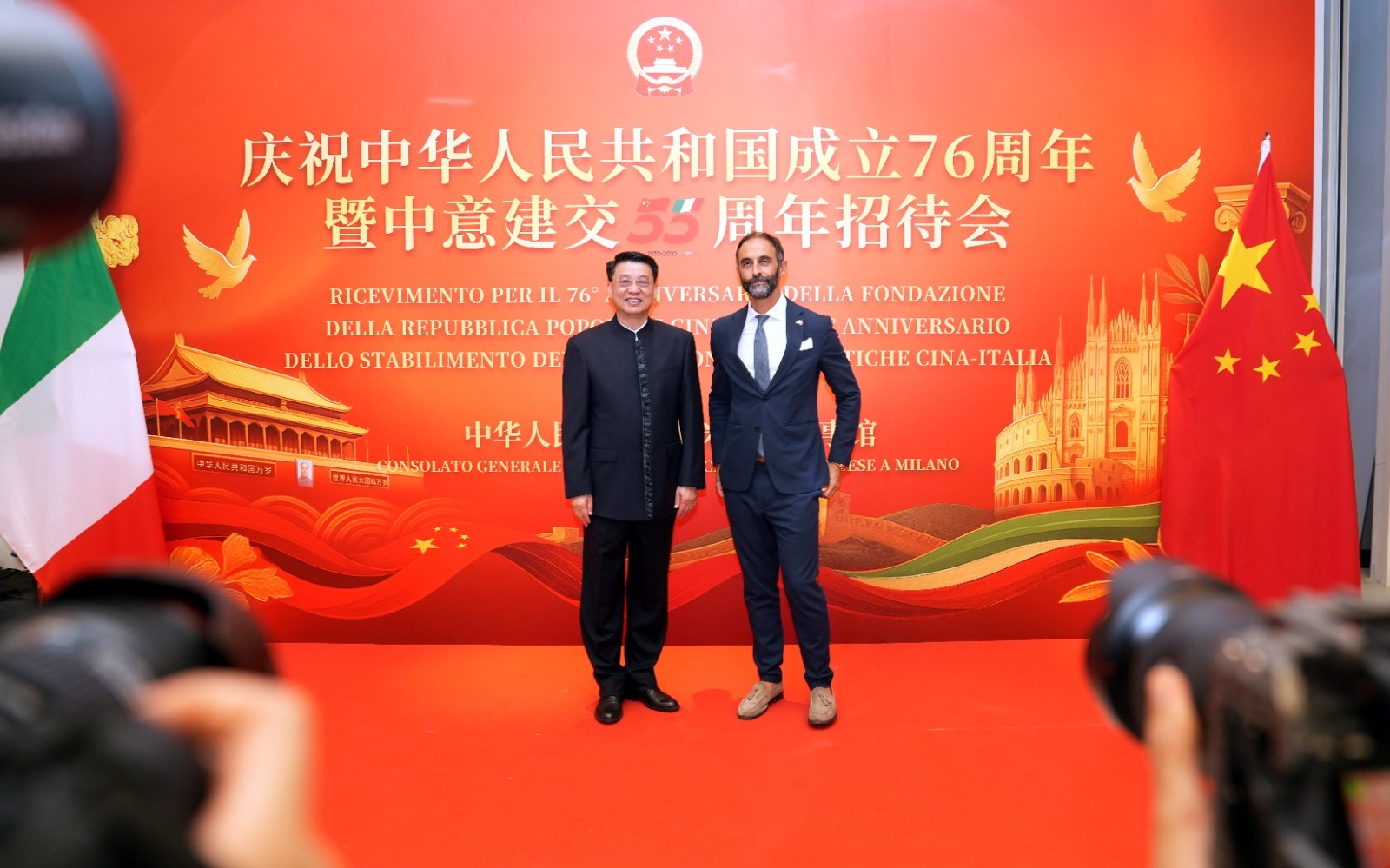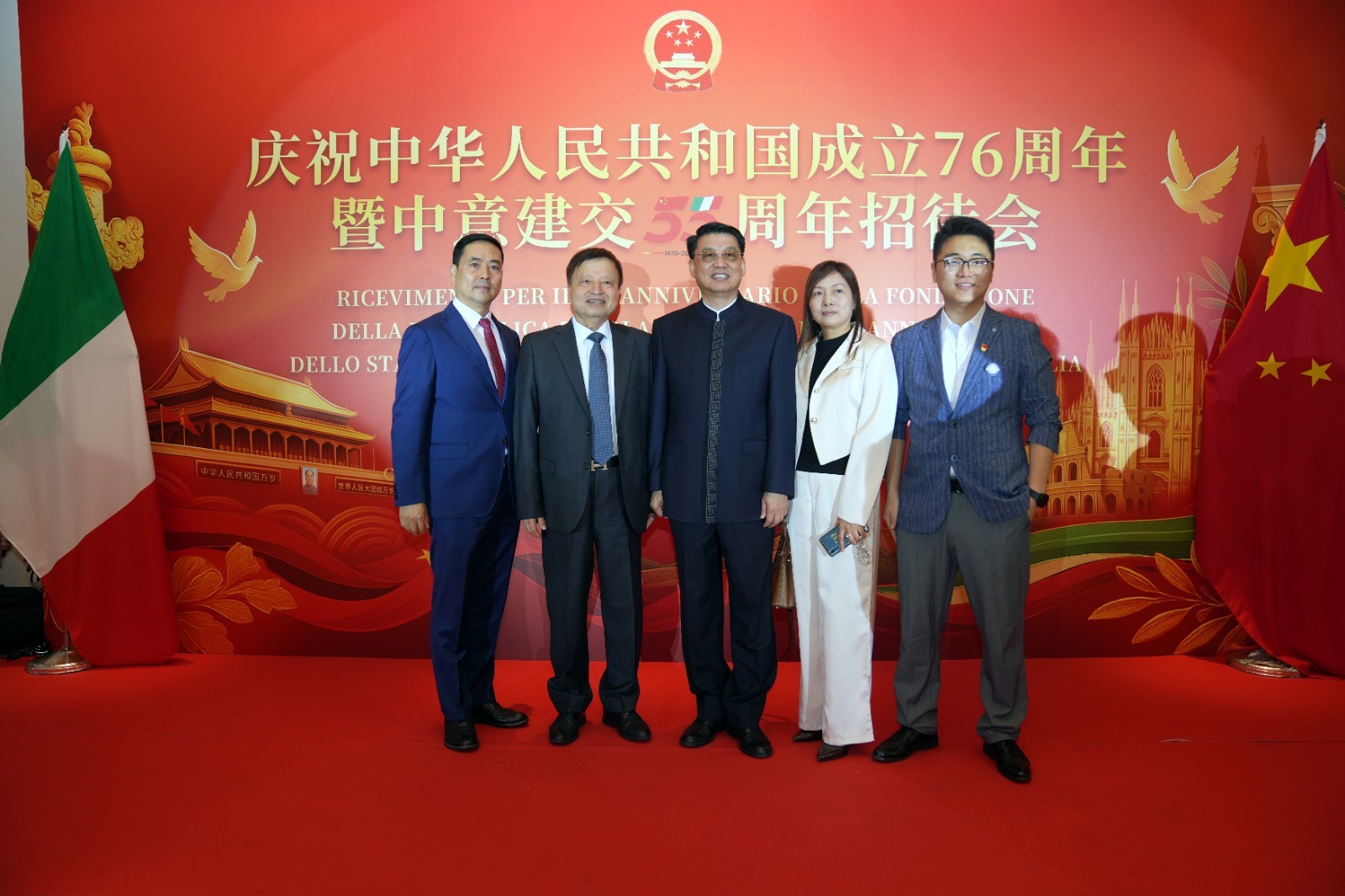 欧洲壹佰君2025年9月20日意大利米兰电:9月19日,中国驻米兰总领事馆在米兰皇家花园酒店隆重举办庆祝中华人民共和国成立76周年暨中意建交55周年招待会。