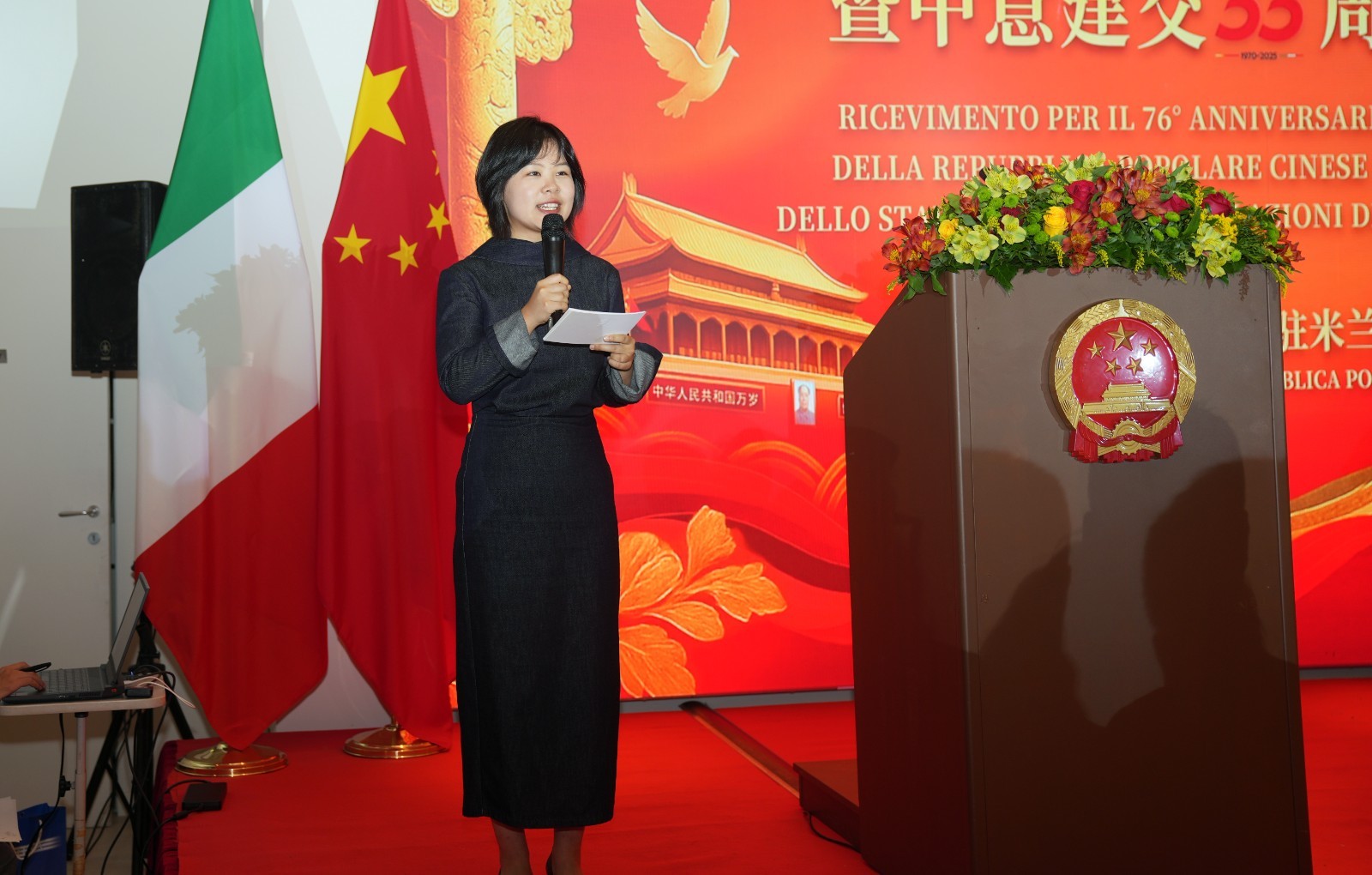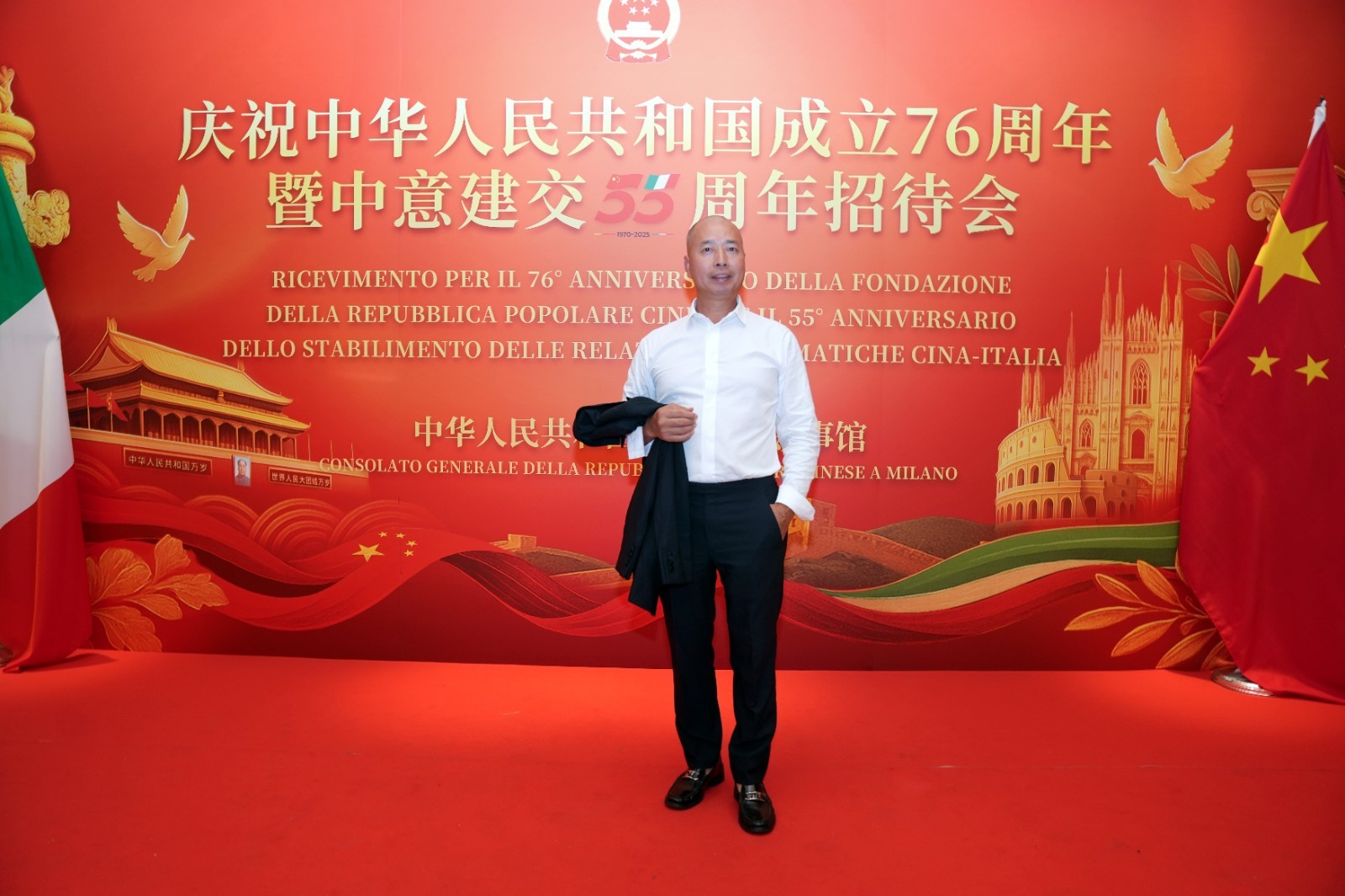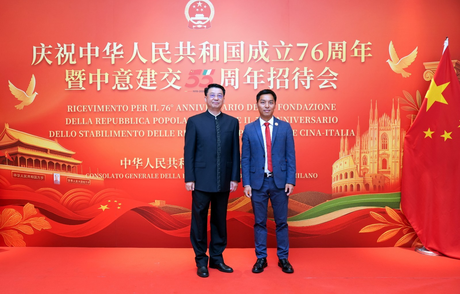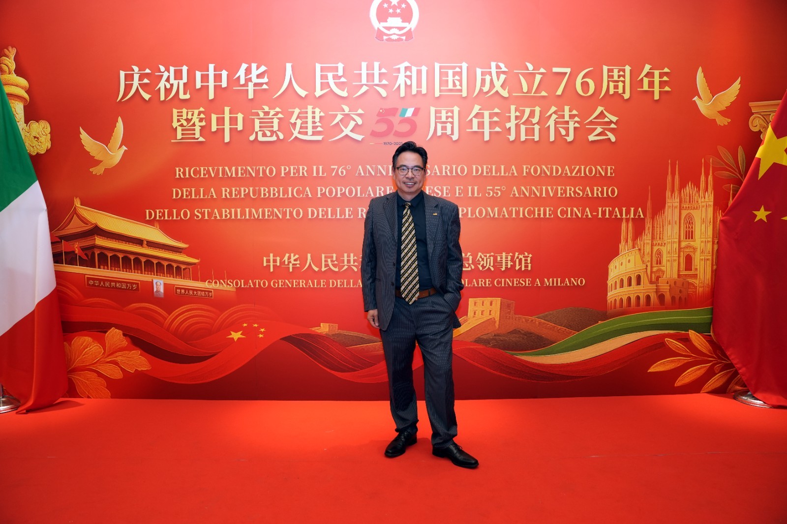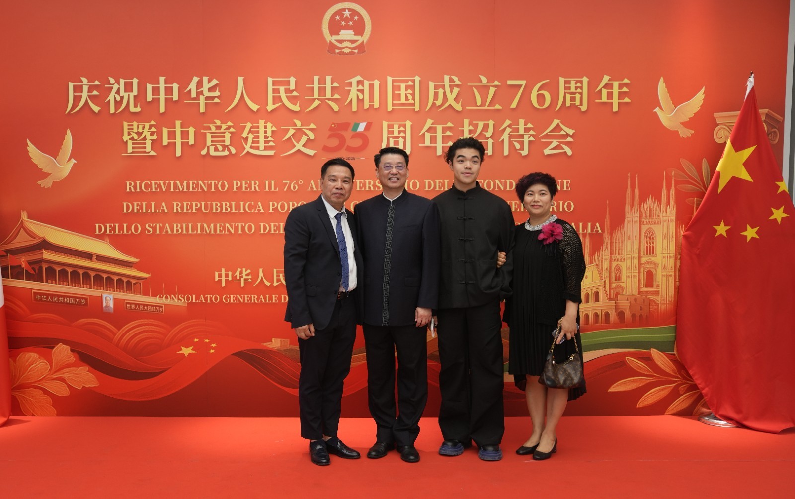 欧洲壹佰君2025年9月20日意大利米兰电:9月19日,中国驻米兰总领事馆在米兰皇家花园酒店隆重举办庆祝中华人民共和国成立76周年暨中意建交55周年招待会。